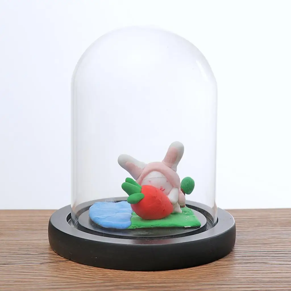 Cupola in vetro trasparente di alta qualità con base in legno. Ha una fine stabilità termica; la temperatura può essere -20& # Da 39;C a 150& # 39;C.