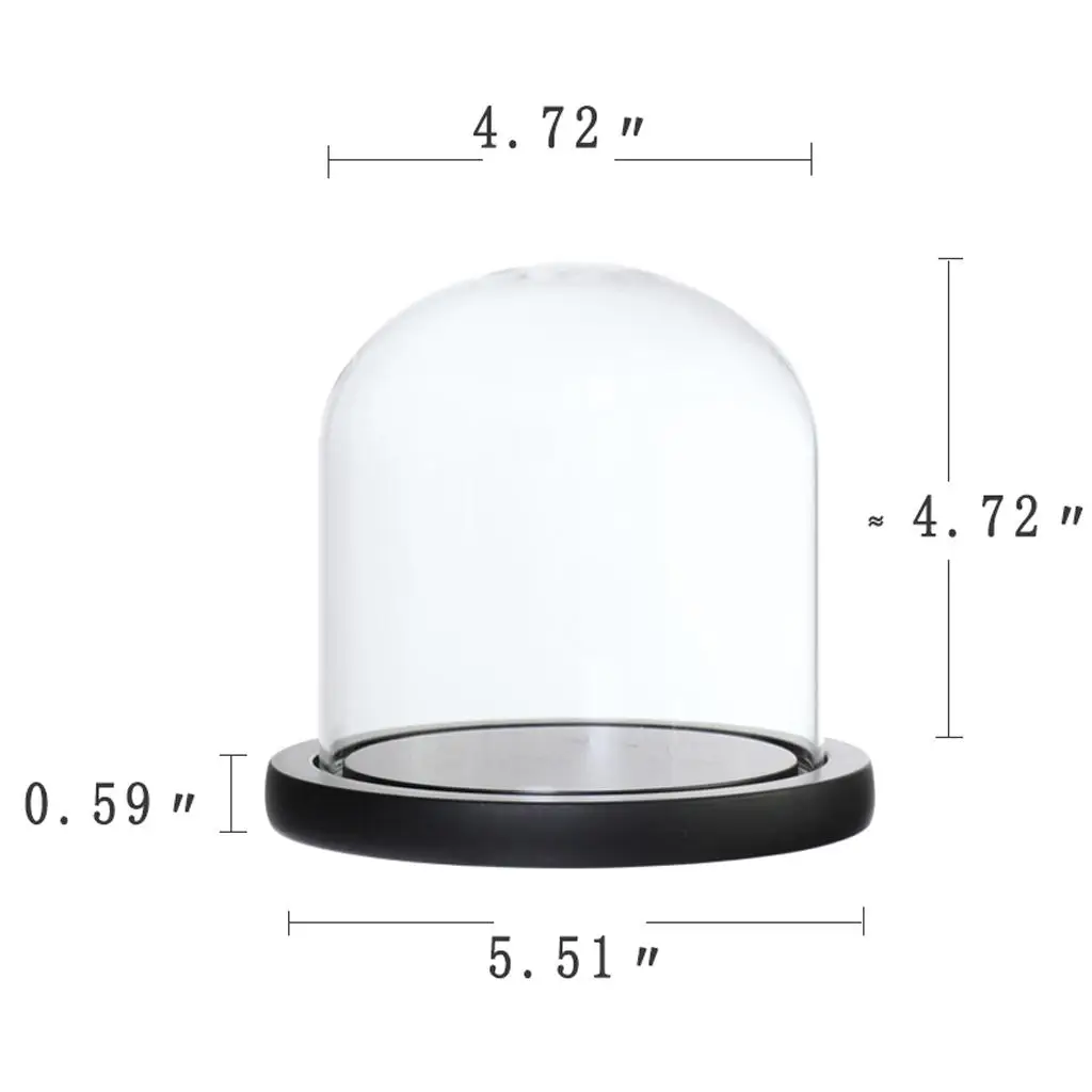 Taglia E: Cupola di vetro: 12×12 cm (DiametroxH); Basa Dia. 12 cm; Altezza base: 1,5 cm