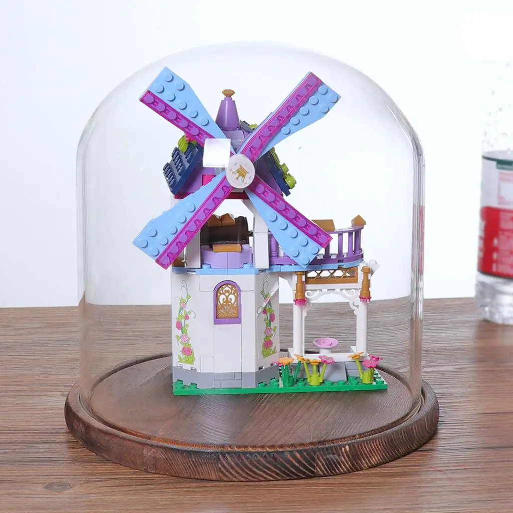 Cupola in vetro trasparente di alta qualità con base in legno. Ha una fine stabilità termica; la temperatura può essere -20& # Da 39;C a 150& # 39;C.