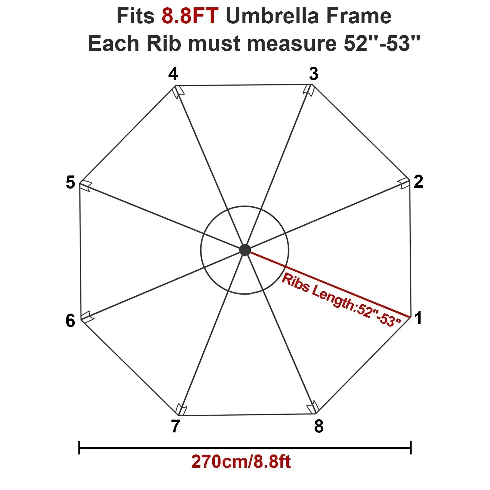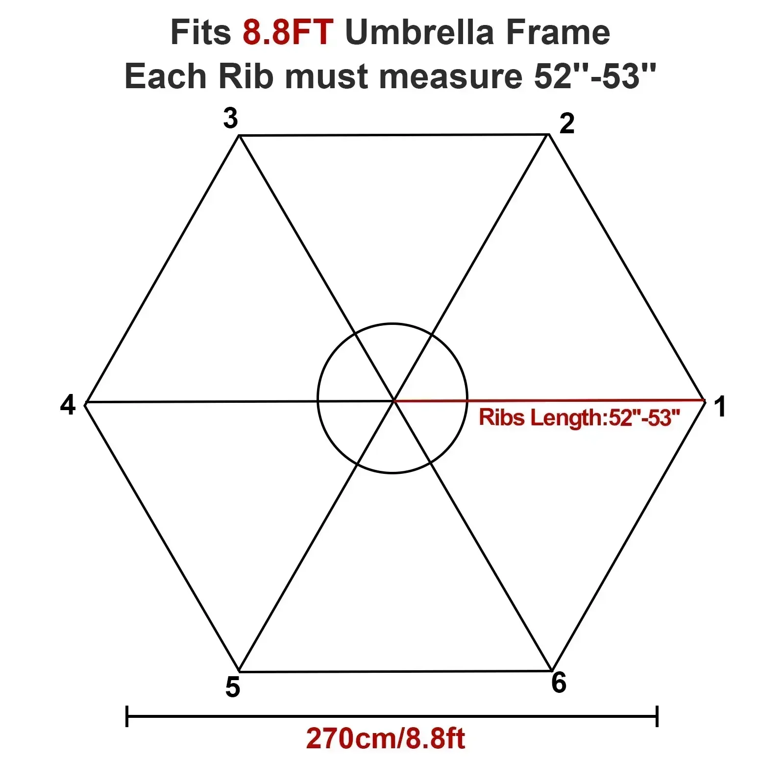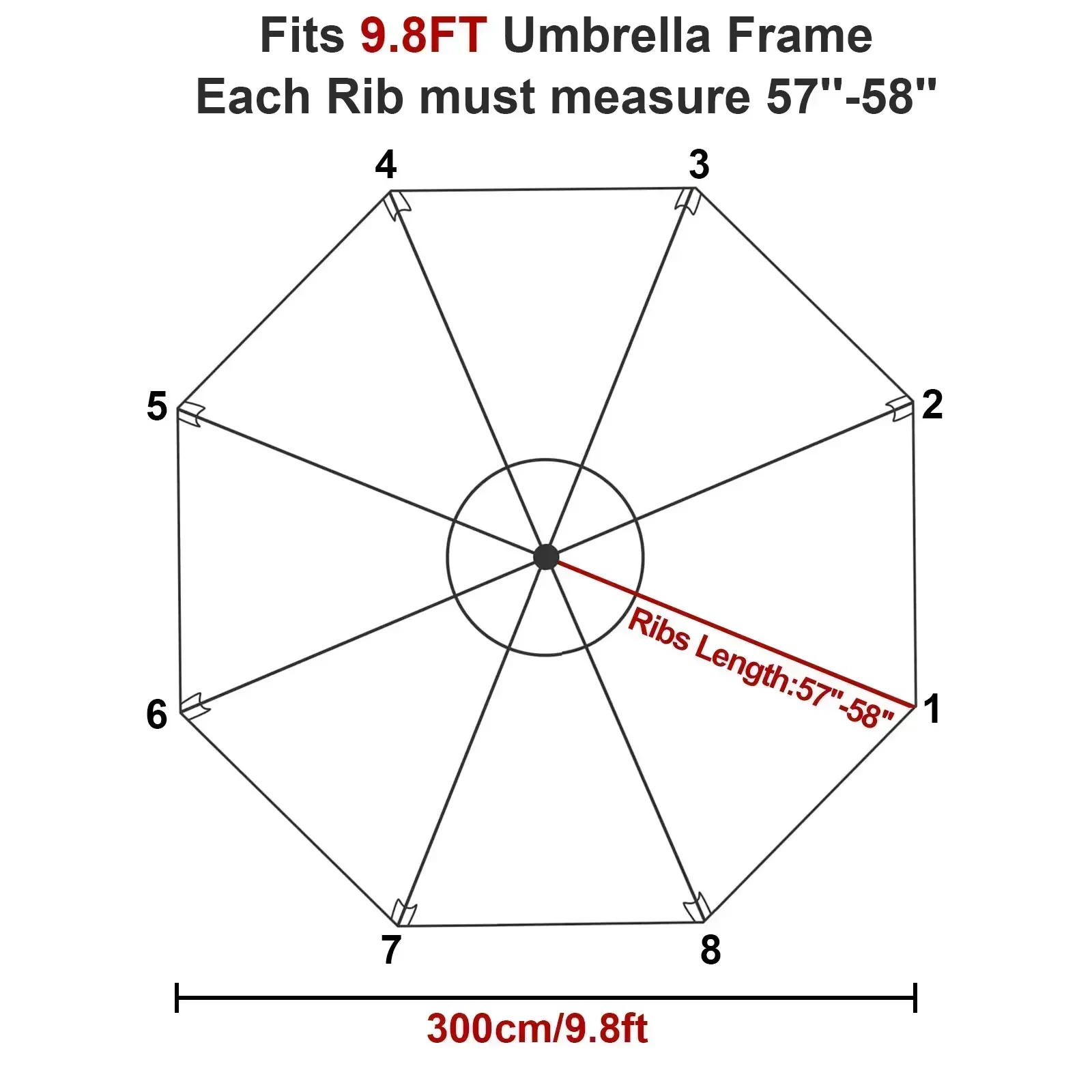 2,Rimuovi la vecchia copertura e sostituire la nuova, questo è quasi un nuovo ombrellone.Ci sono 5 taglie di questa copertina.Si adatta perfettamente per la maggior parte del telaio dell’ombrello a 8 culle o 6 culle.Si prega di scegliere l’unico corretto prima di effettuare l’ordine.