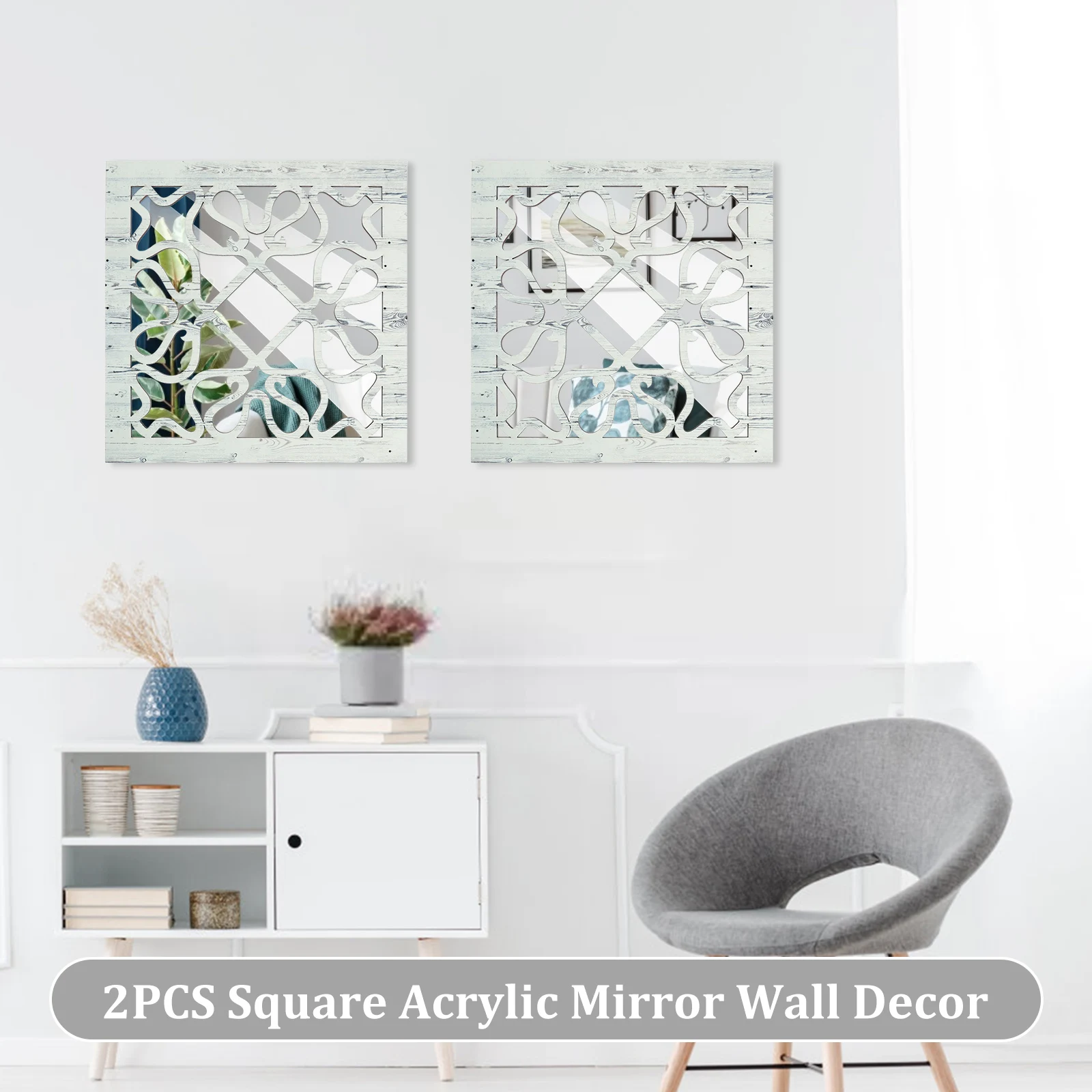 2/3Pcs Square Wall Mirror Decor Sticker specchi da parete in legno acrilico autoadesivo Set per soggiorno bagno camera da letto ingresso
