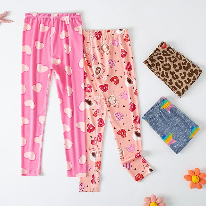 2/4 pezzi mix and match per bambini leggings stampati amore ragazze casual Joker slim 9 pantaloni moda elastico in vita San Valentino Pan
