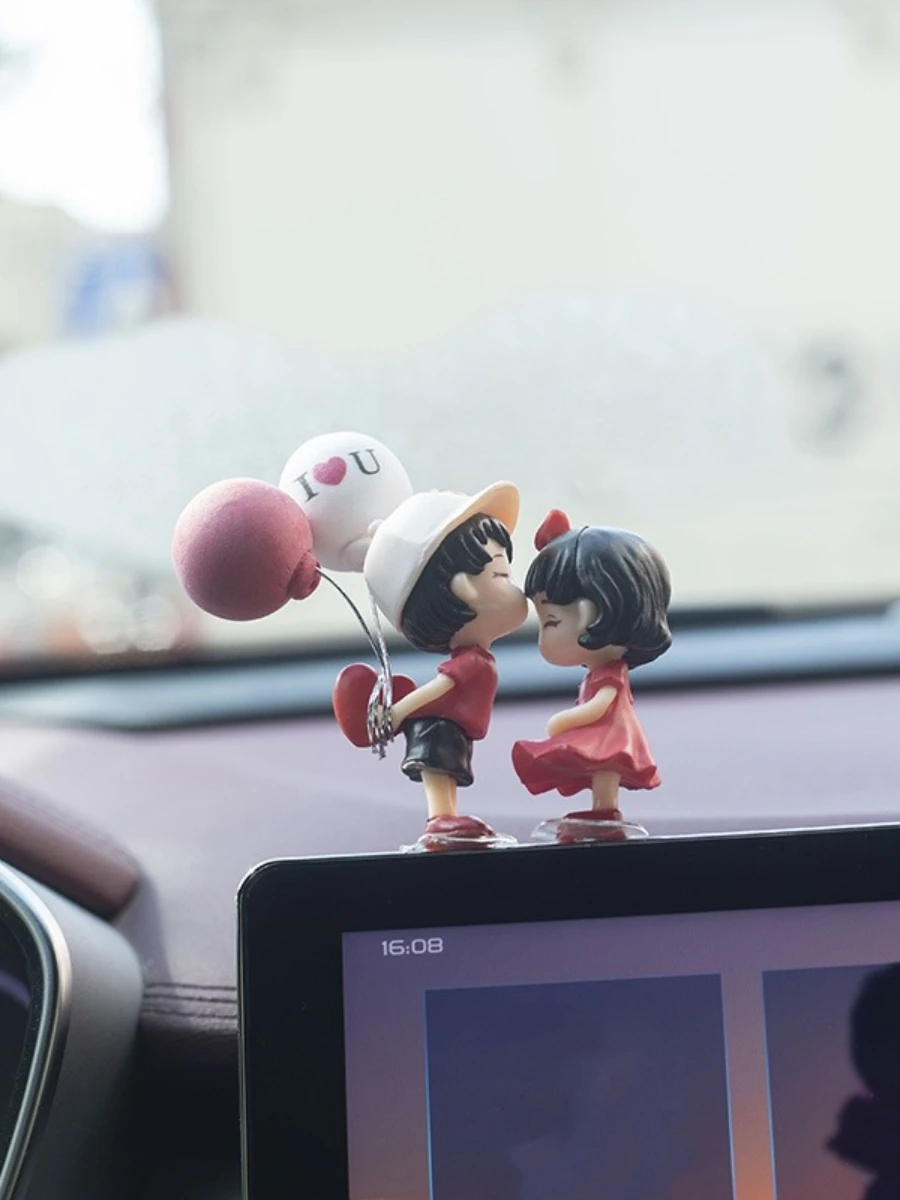 2 coppie per ornamenti per auto, modello, bacio carino, palloncino, decorazione interna per auto, regali per accessori cruscotto