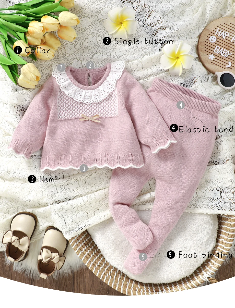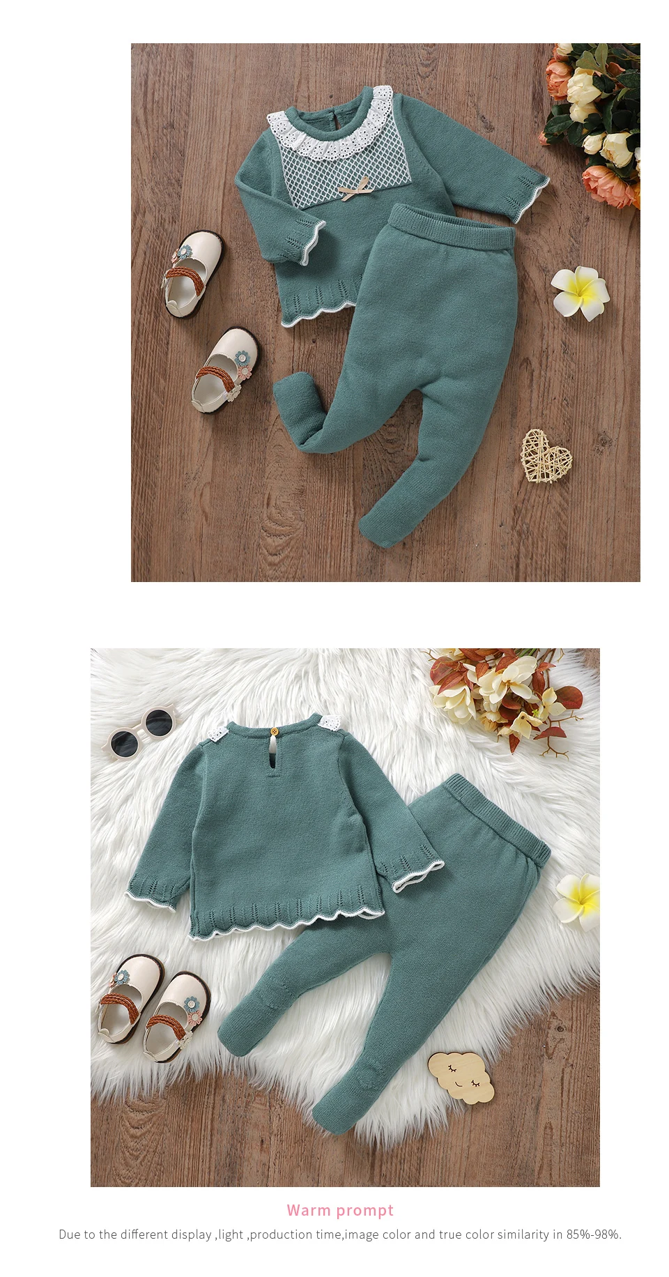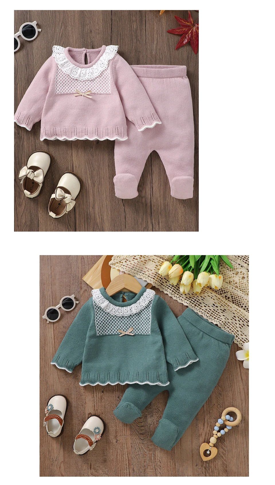 2 pezzi autunno inverno colletto per bambola maglioni a maniche lunghe + pantaloni lunghi tinta unita neonate set di abbigliamento bambino 0-9M top e pantaloni