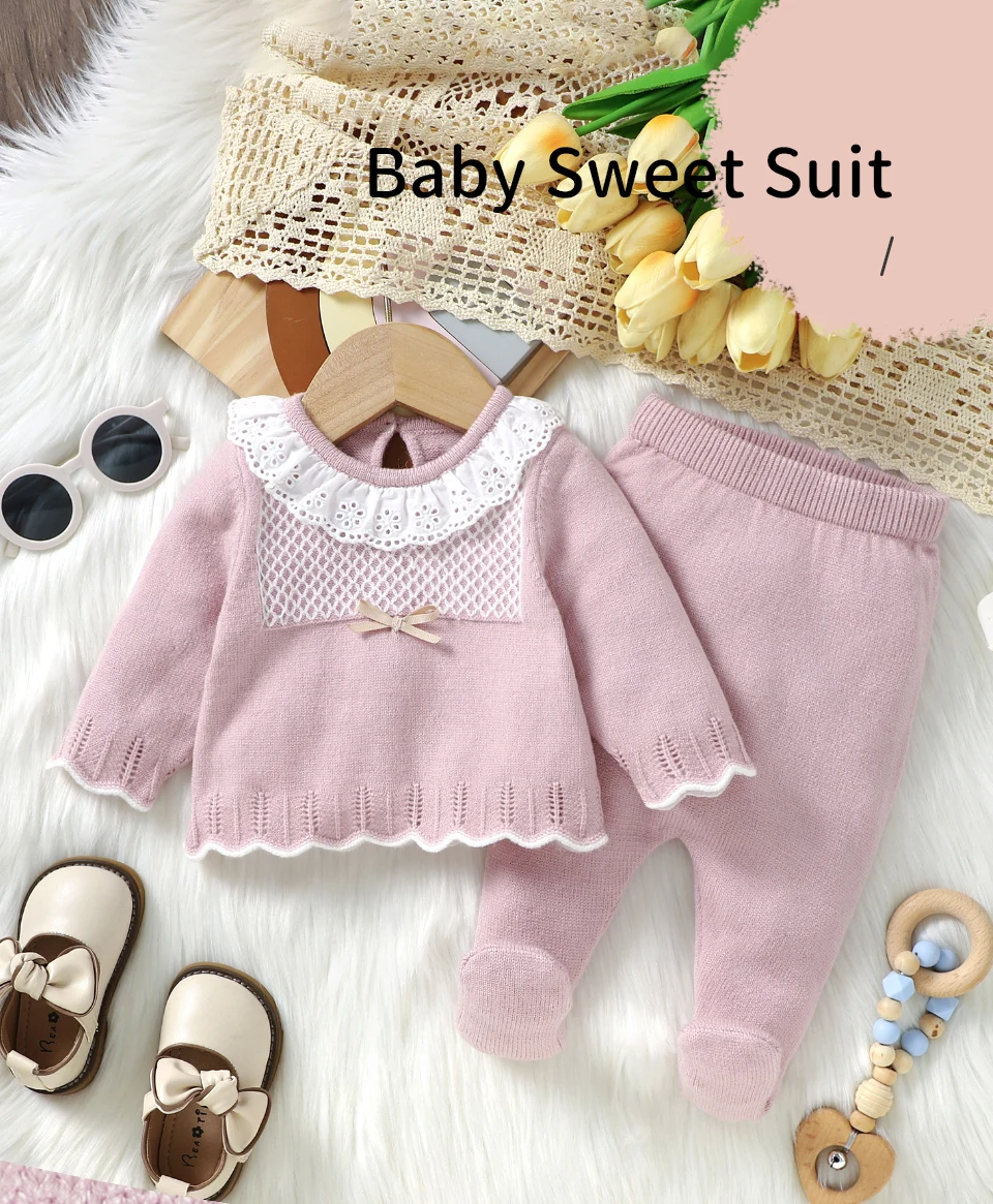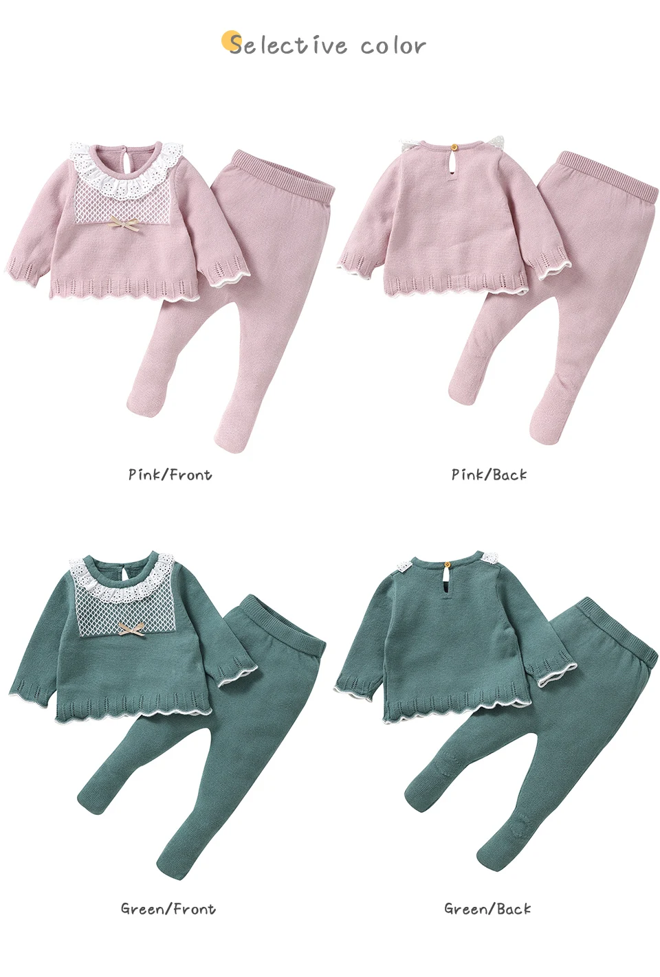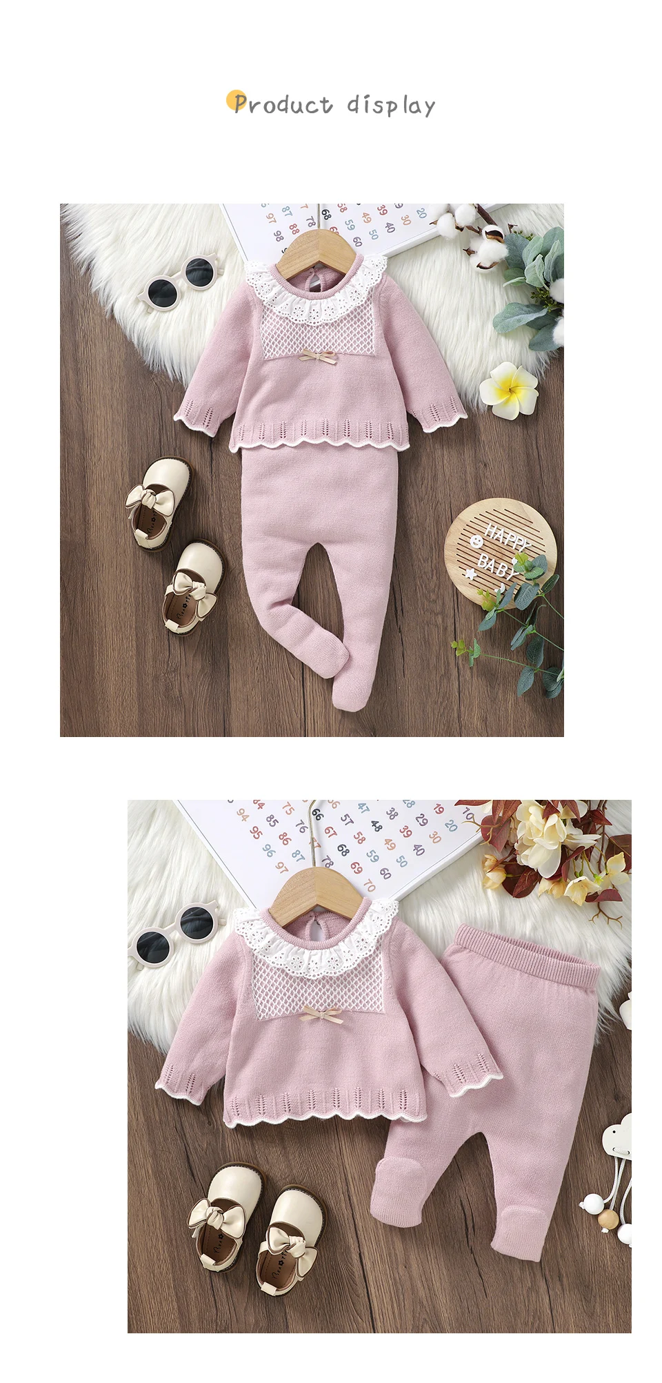 2 pezzi autunno inverno colletto per bambola maglioni a maniche lunghe + pantaloni lunghi tinta unita neonate set di abbigliamento bambino 0-9M top e pantaloni