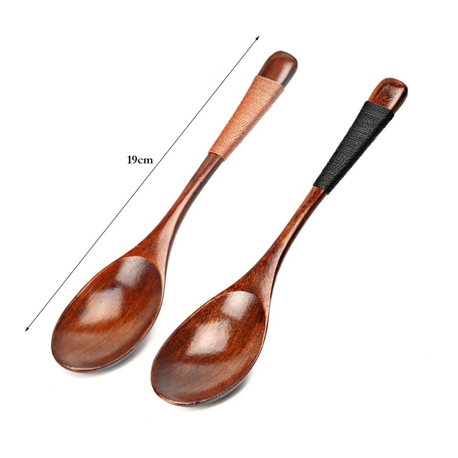 Cucchiaio di legno da 2 pezzi Cucchiaio da dessert per zuppa di riso in stile giapponese, cucchiaio di legno con manico lungo Mestolo Cucchiaino da tè Agitatore da caffè, Cucchiaino da pranzo piccolo per bambini, Stoviglie in legno