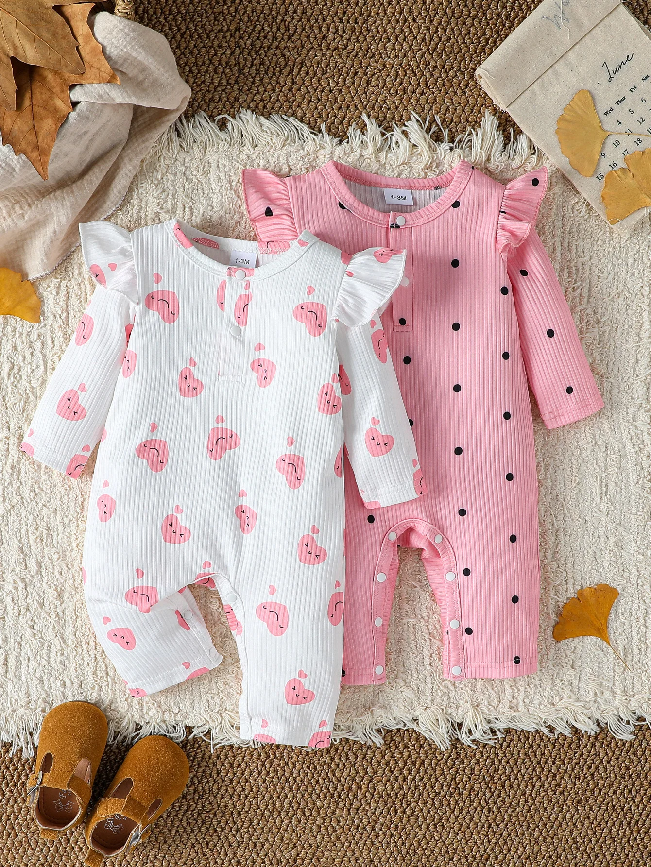 2 pezzi neonata pagliaccetto tuta autunno a costine volant manica lunga stampa cuore tuta neonato neonate carino vestiti quotidiani