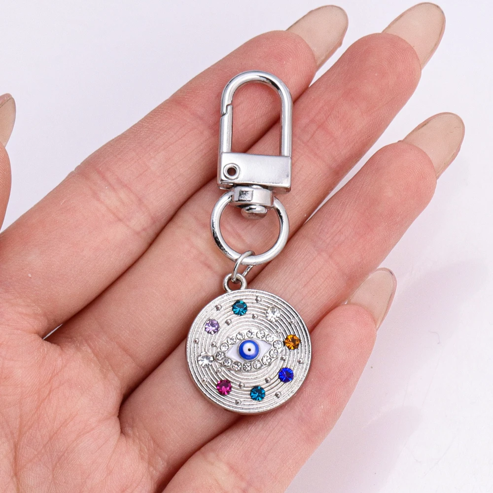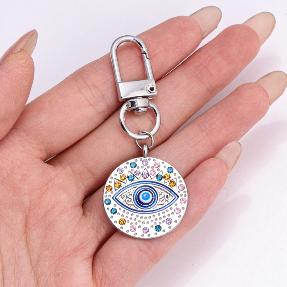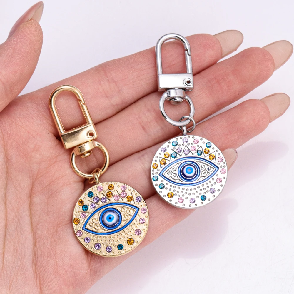 2 pezzi portachiavi in metallo zircone bling ciondolo malocchio blu chiusura girevole portachiavi donna portachiavi per auto accessorio decorativo