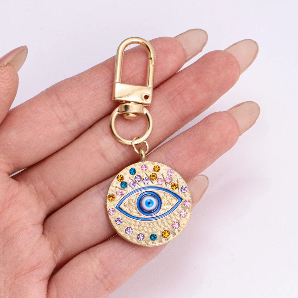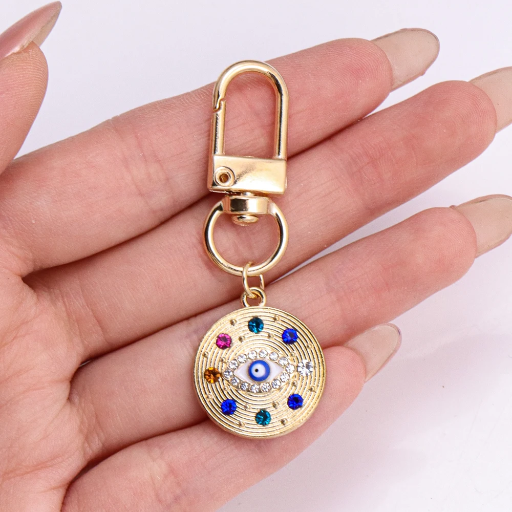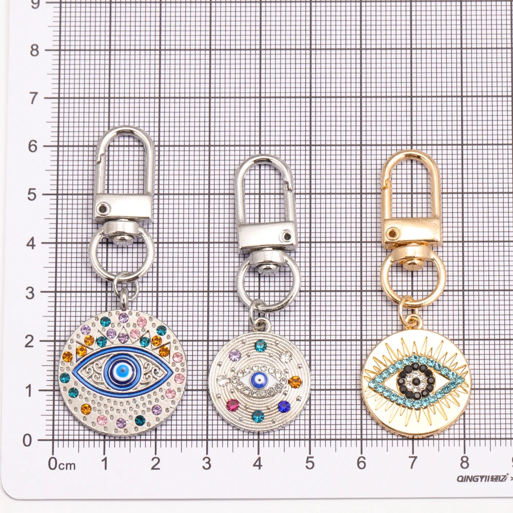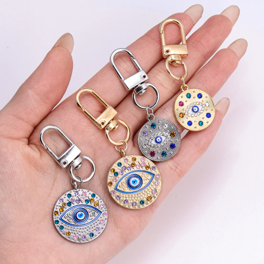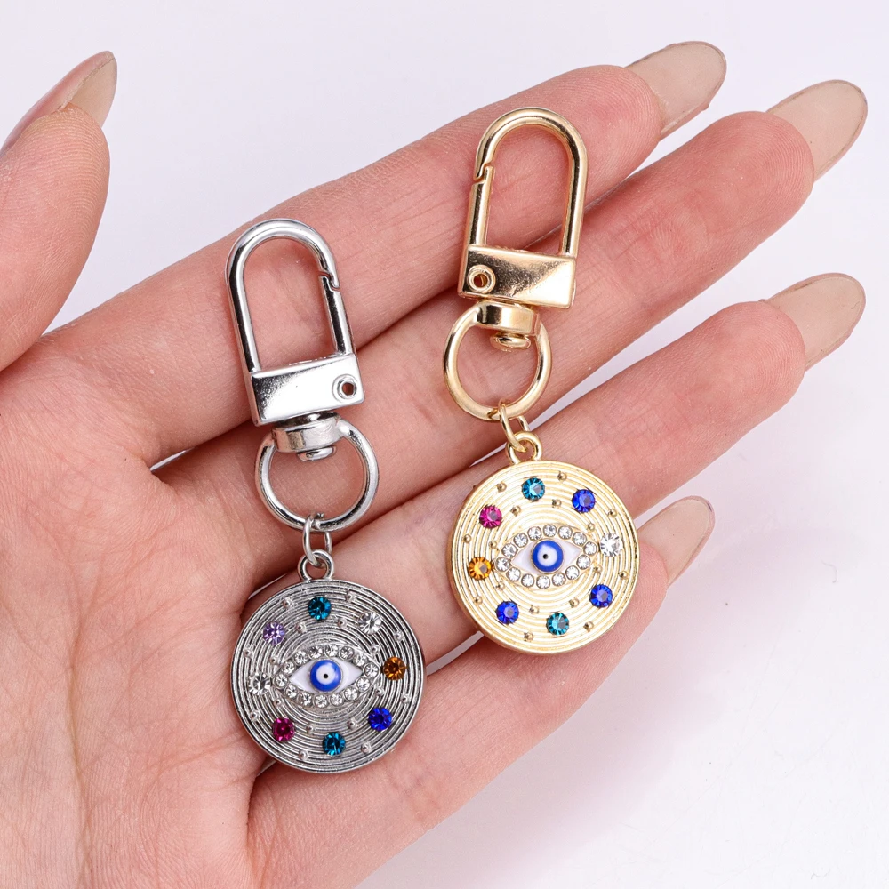 2 pezzi portachiavi in metallo zircone bling ciondolo malocchio blu chiusura girevole portachiavi donna portachiavi per auto accessorio decorativo