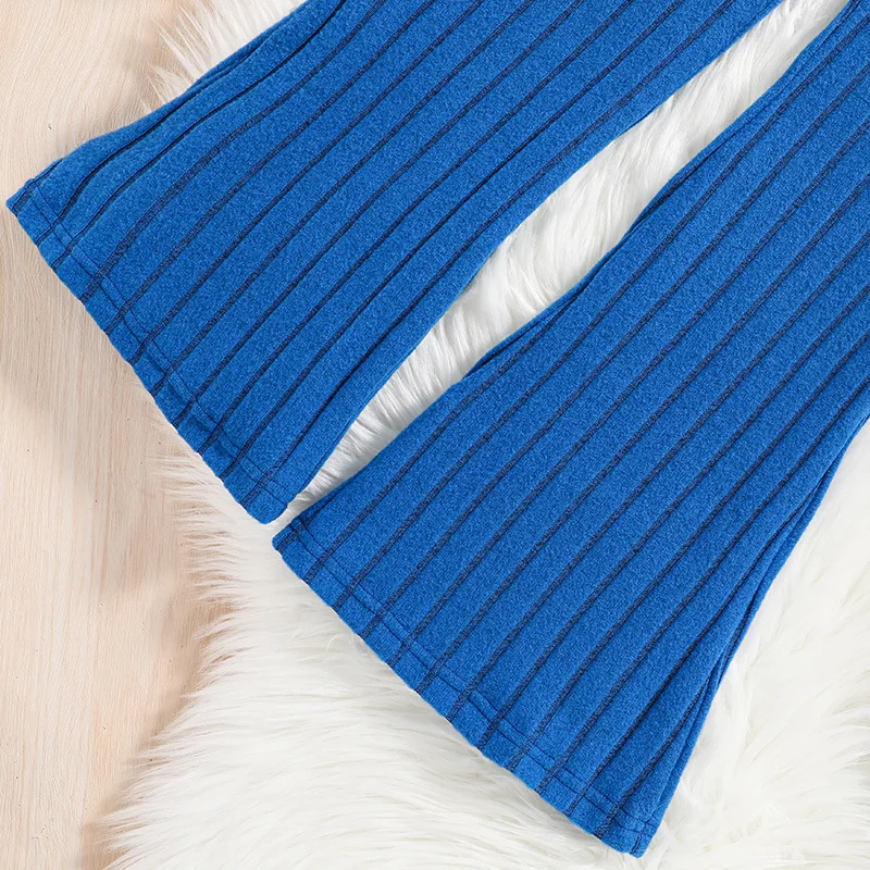 2 pezzi set di abbigliamento per bambini abiti per ragazze 2024 nuovo autunno inverno bambini moda maglia blu manica lunga top svasati pantaloni 7-14 anni