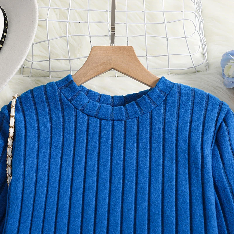 2 pezzi set di abbigliamento per bambini abiti per ragazze 2024 nuovo autunno inverno bambini moda maglia blu manica lunga top svasati pantaloni 7-14 anni 12 pezzi set di abbigliamento per bambini abiti per ragazze 2024 nuovo autunno inverno bambini moda maglia blu manica lunga top svasati pantaloni 7-14 anni