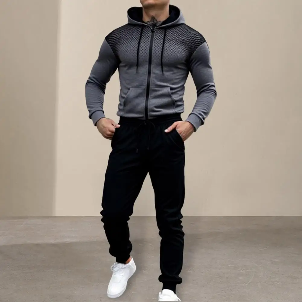 2 pezzi/set tuta sportiva da uomo con coulisse con cappuccio top a maniche lunghe pantaloni in vita elastica set outfit fitness esercizio abbigliamento casual