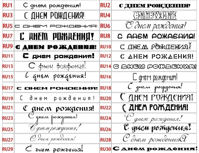 I caratteri RU1-RU30 sono supportati solo per il russo