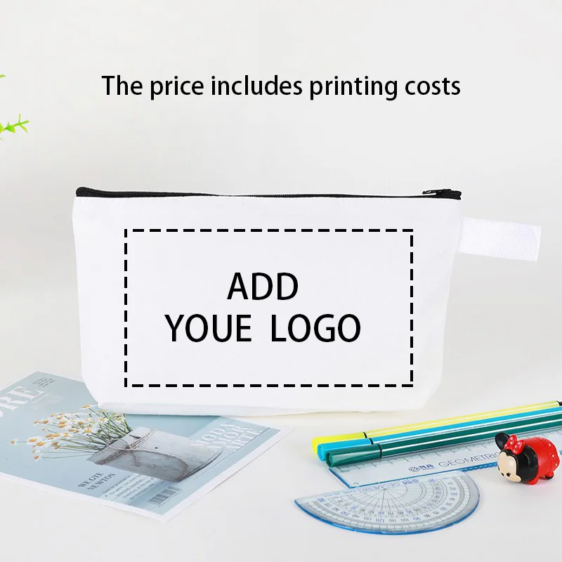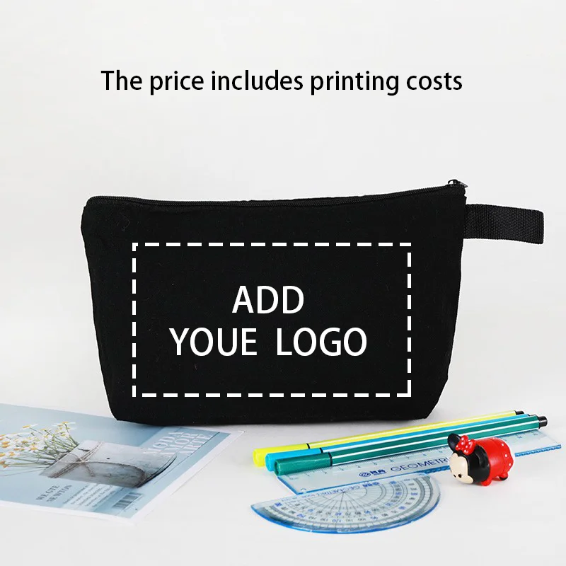 20/30/50/100 borse/lotto Borsa per trucco in tela colorata con logo personalizzato, borsa da donna, astuccio per studenti 25x13x4.5 cm