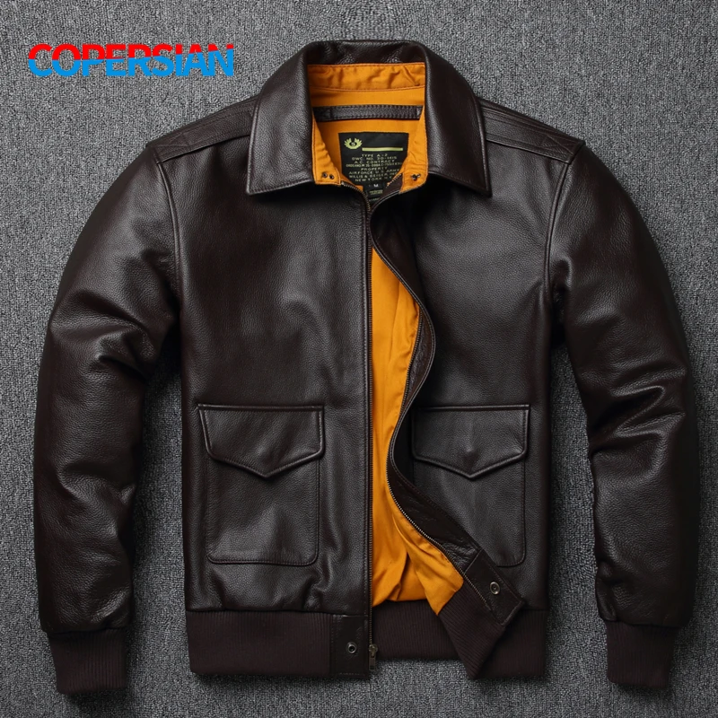 2021 nuovo strato superiore da uomo giacca in vera pelle giacche da pilota militari giacca Air Force Flight A2 cappotto Oversize marrone scuro 12021 nuovo strato superiore da uomo giacca in vera pelle giacche da pilota militari giacca Air Force Flight A2 cappotto Oversize marrone scuro
