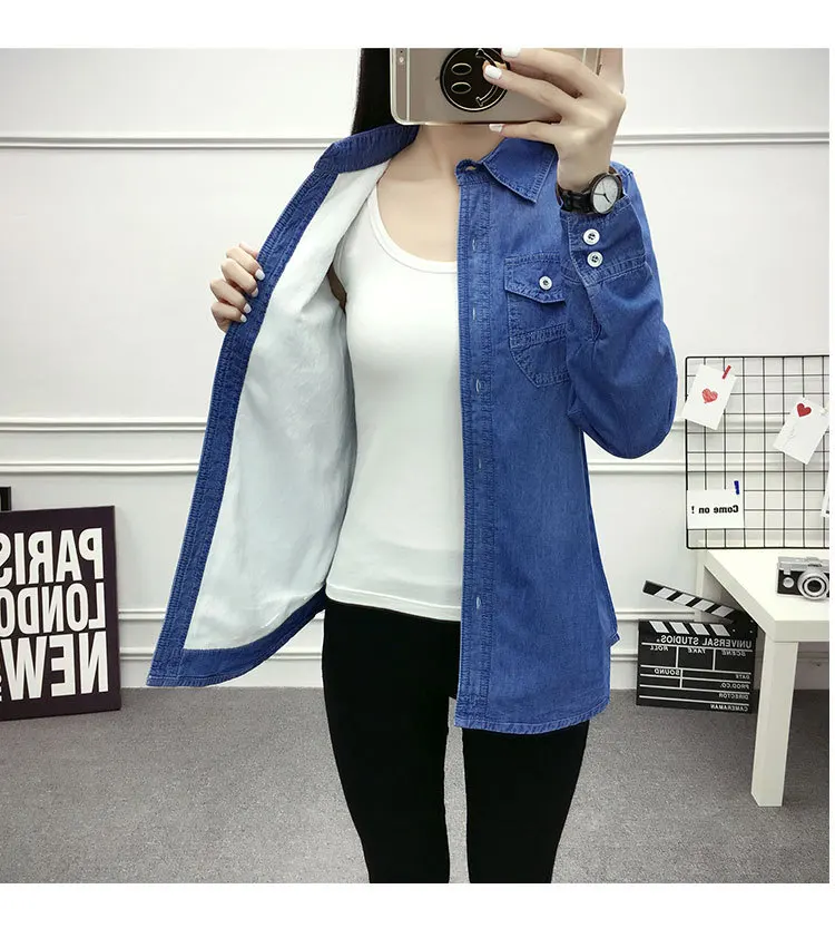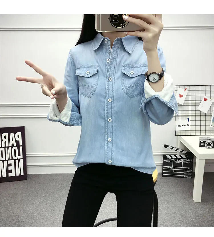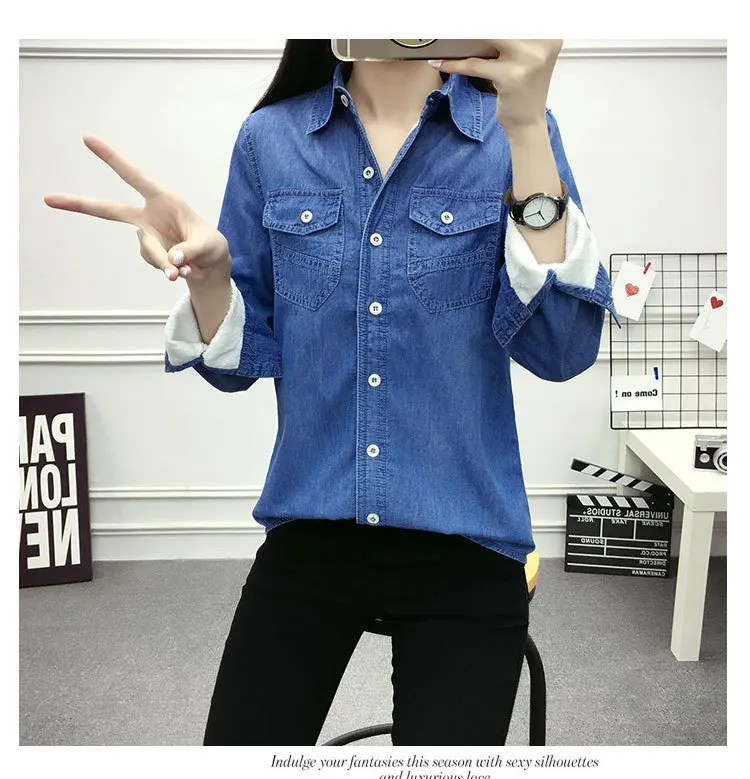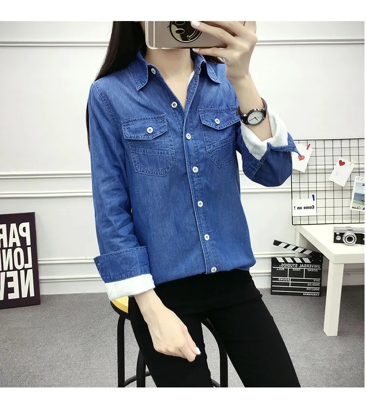 2022 Casual inverno Autunno caldo pile spesso denim Camicette Donna Donna Top Camicette da donna Camicia a maniche lunghe vestire S-3XL
