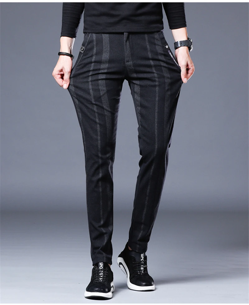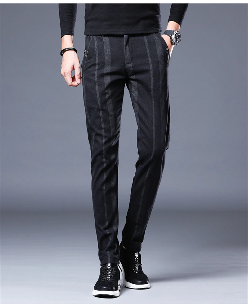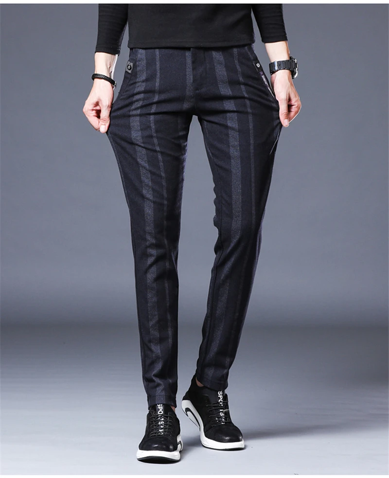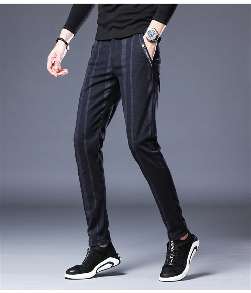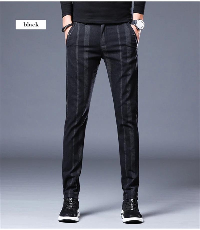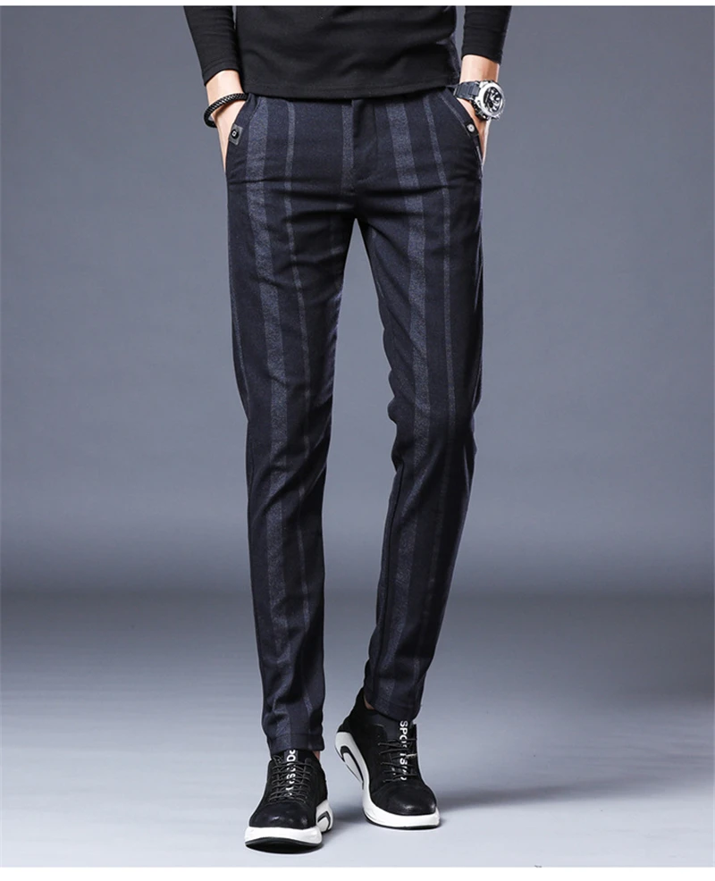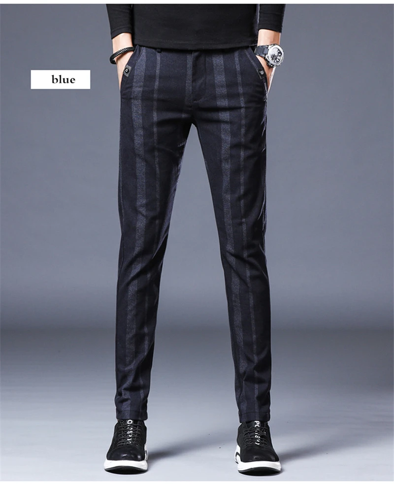 2022 Mens primavera autunno inverno pantaloni Casual levigati da uomo pantaloni neri blu in cotone dritto elasticizzato a righe di alta qualità