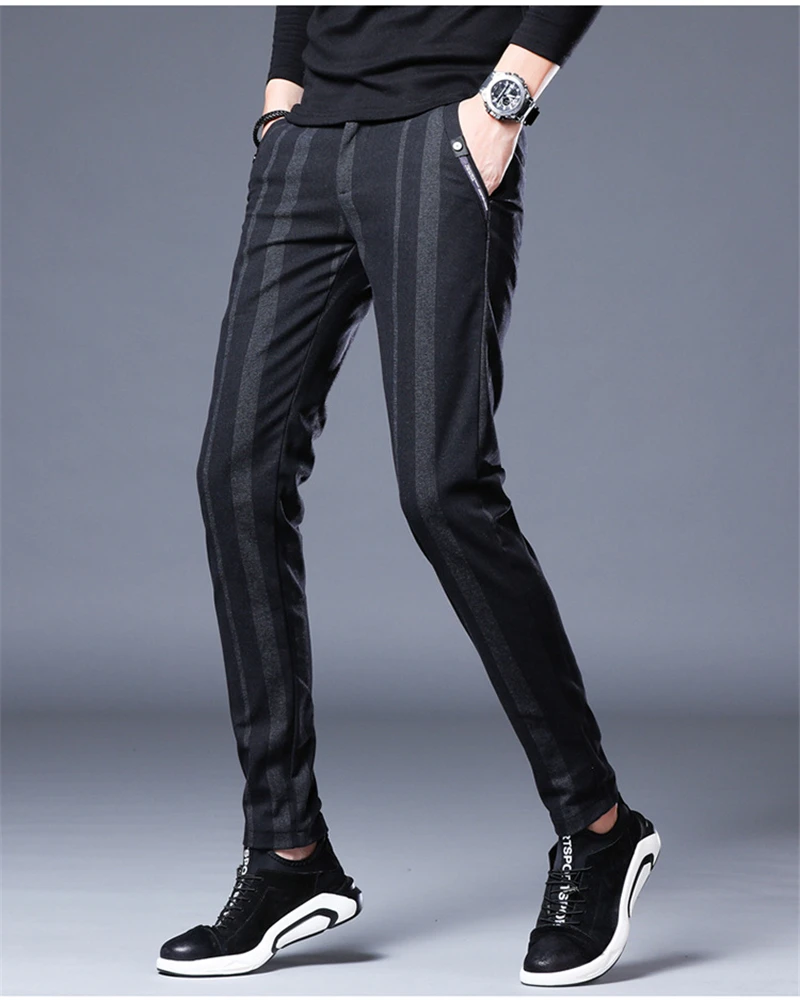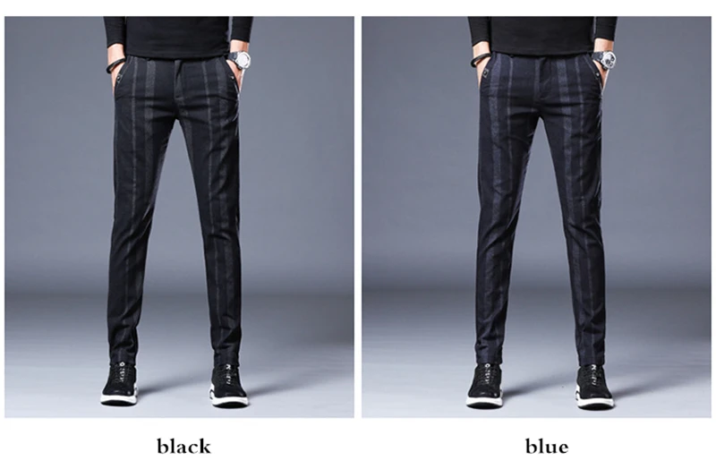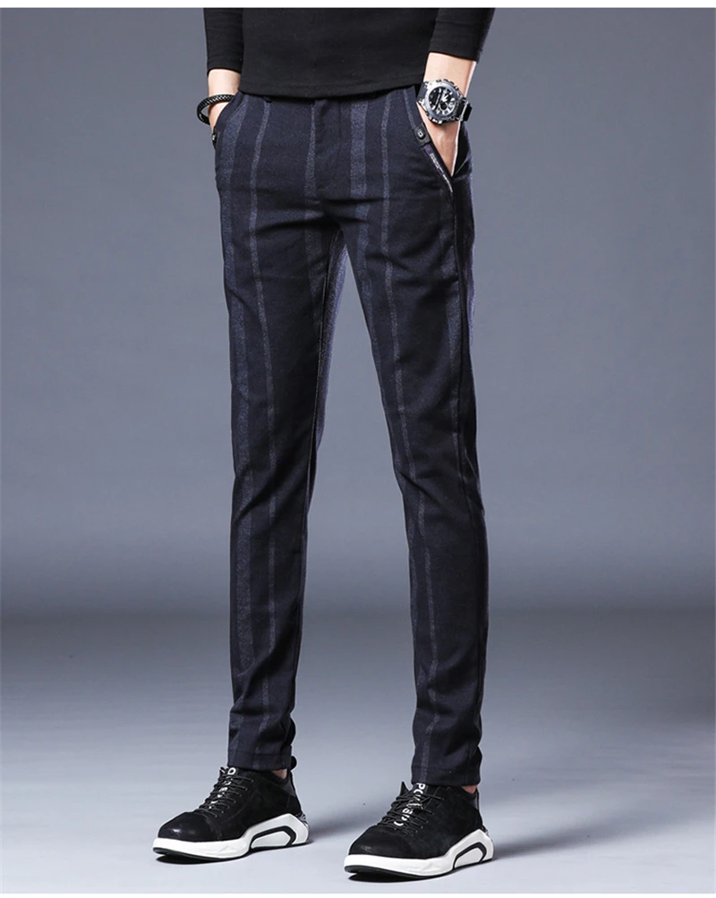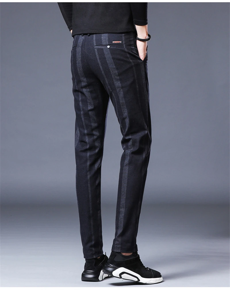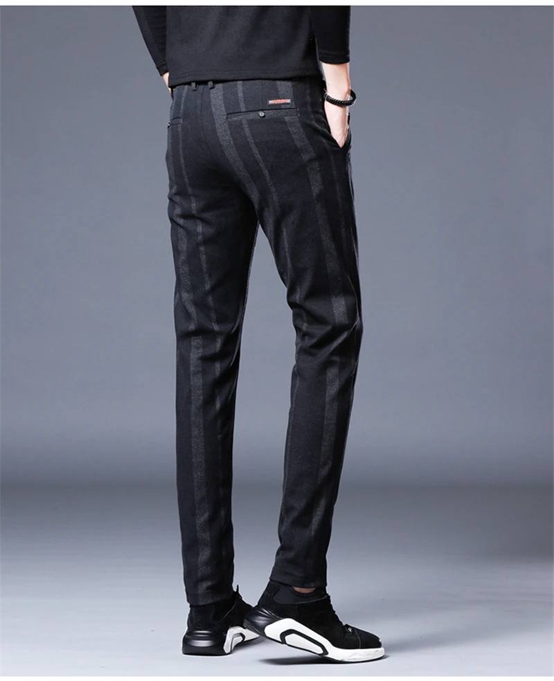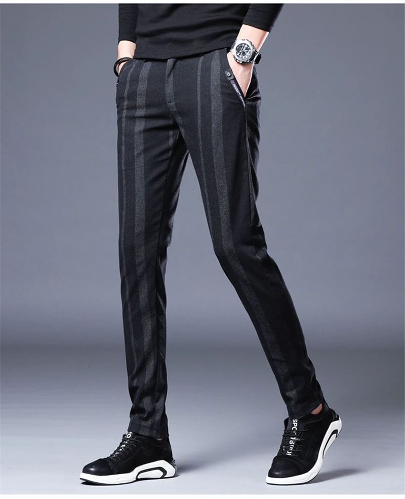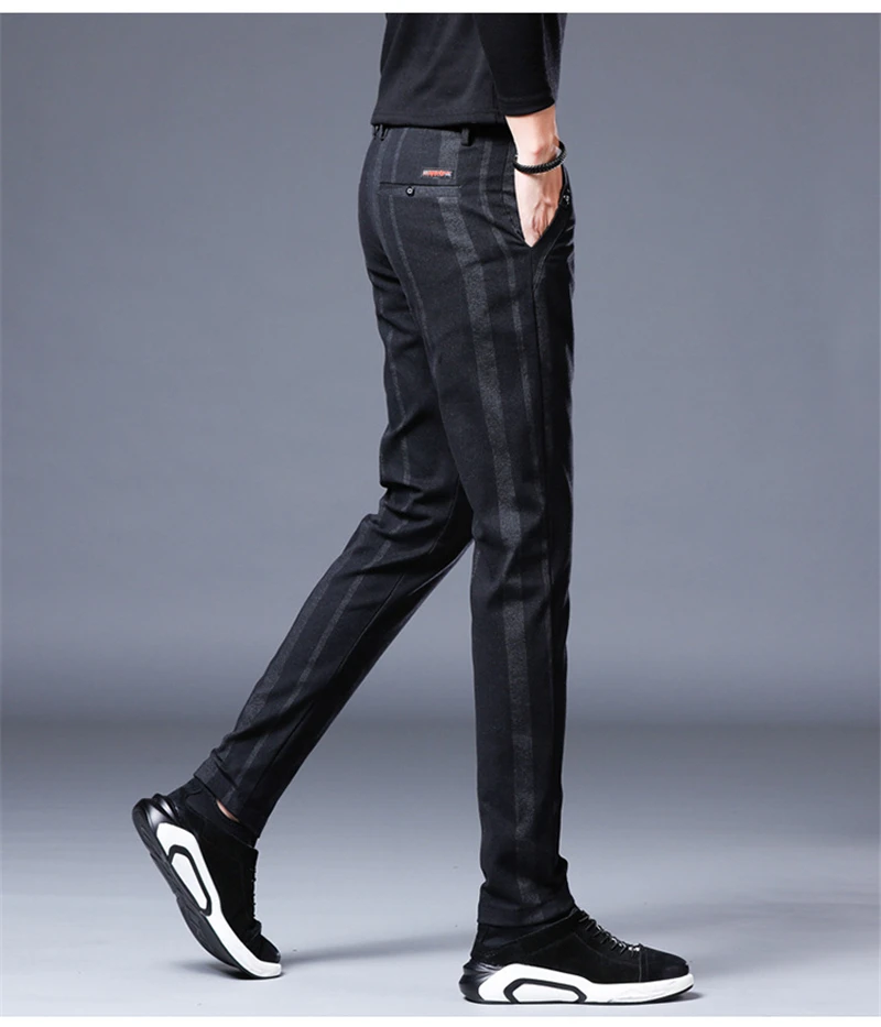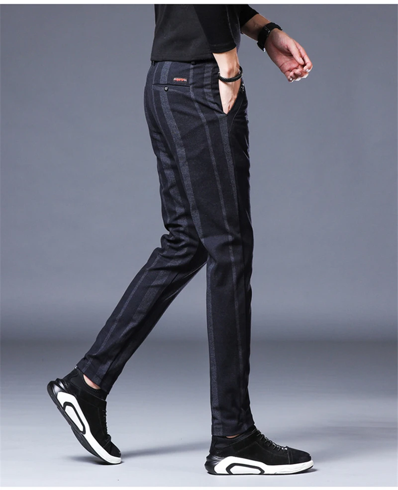 2022 Mens primavera autunno inverno pantaloni Casual levigati da uomo pantaloni neri blu in cotone dritto elasticizzato a righe di alta qualità