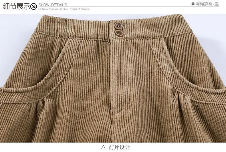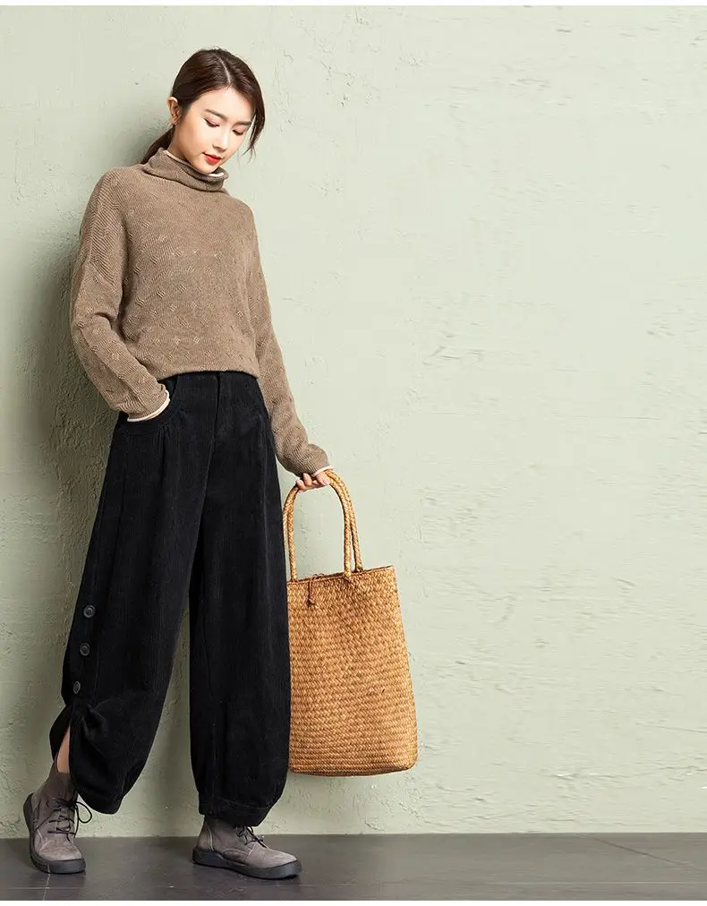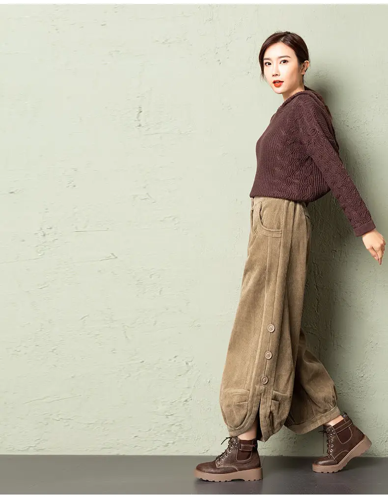 2023 autunno inverno Vintage a vita alta lanterna pantaloni donna bottone laterale larghi pantaloni Casual larghi gamba larga pantaloni di velluto a coste donna