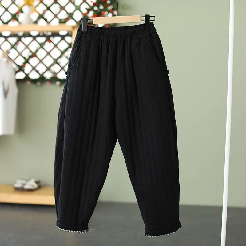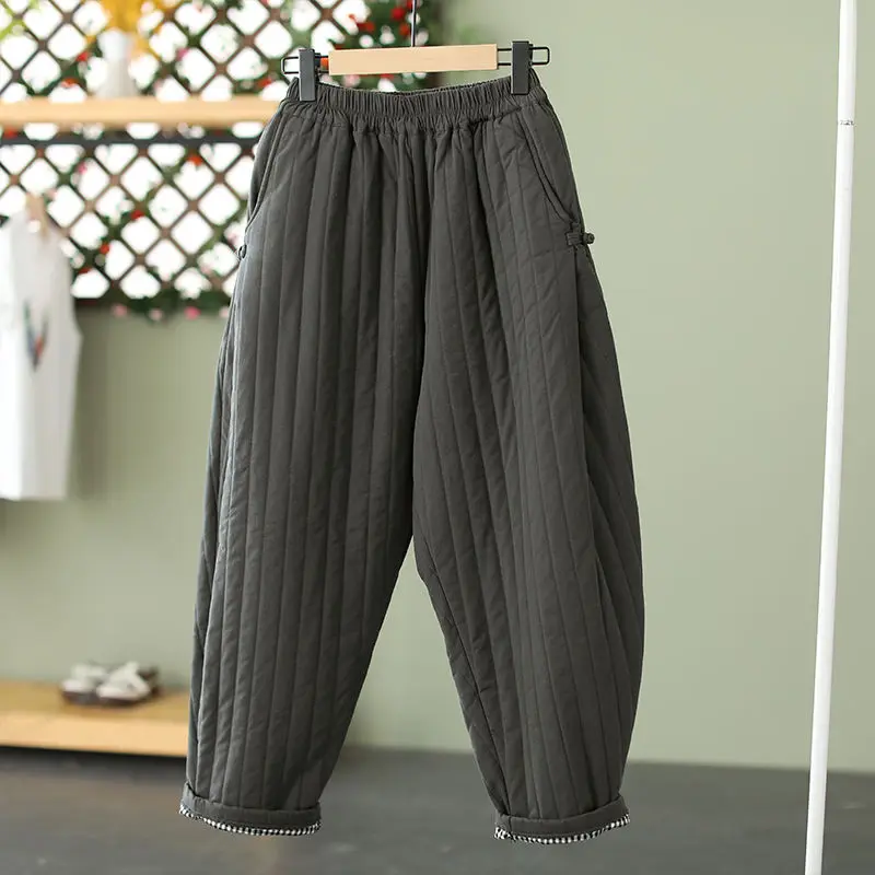 2023 inverno caldo Clip cotone addensato pantaloni in cotone retrò per capispalla da donna elastico in vita pantaloni larghi rilassati