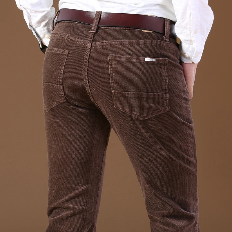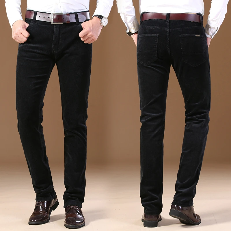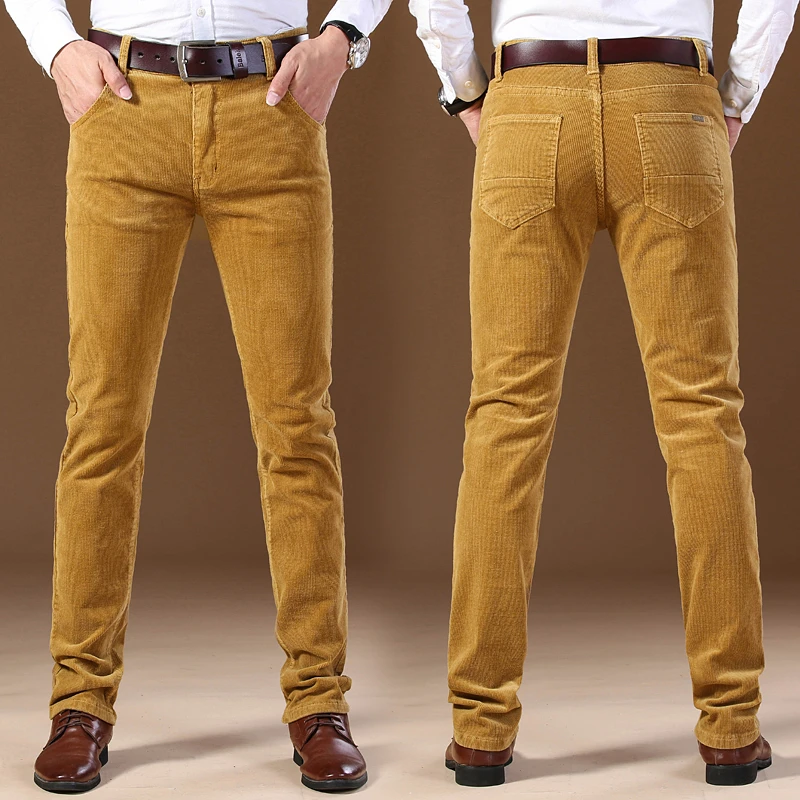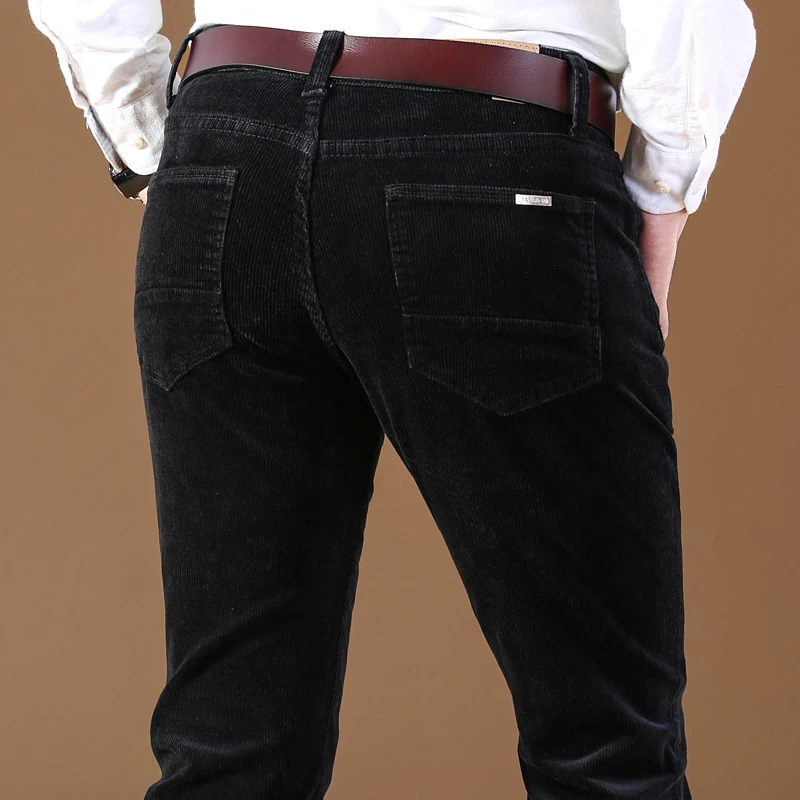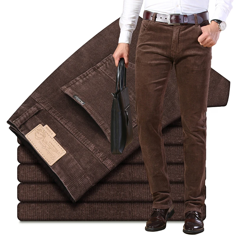 2023 inverno uomo velluto a coste pantaloni Casual Business Fashion tinta unita elastico Regular Fit pantaloni maschio nero kaki caffè blu