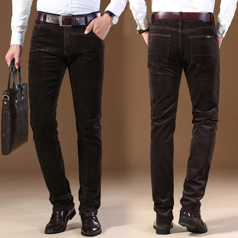 2023 inverno uomo velluto a coste pantaloni Casual Business Fashion tinta unita elastico Regular Fit pantaloni maschio nero kaki caffè blu