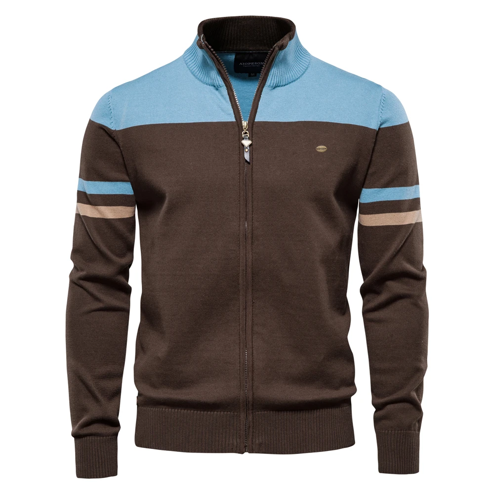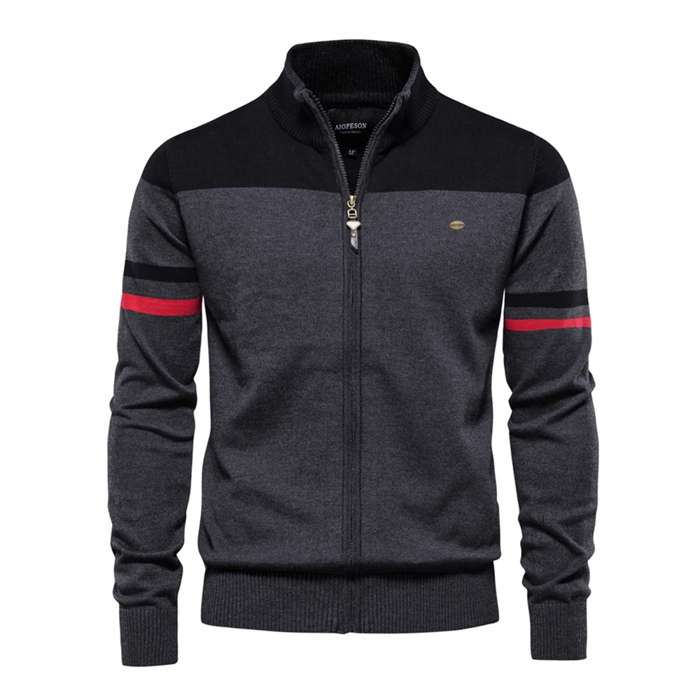 2023 Nuovo Autunno e Inverno 100% Cotone Mens Cardigan con Cerniera Casual Patchwork Moda Gioventù Maglioni Lavorati a Maglia per Gli Uomini