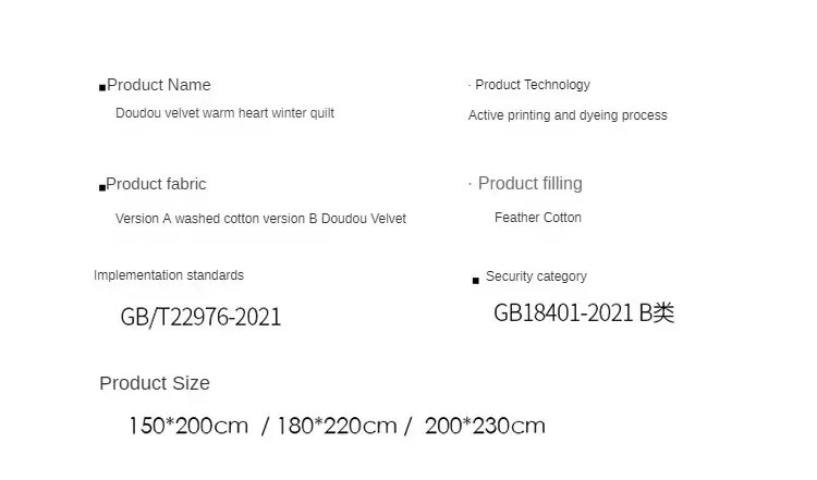 | Bedding subdivision | Chemical fiber blanket |