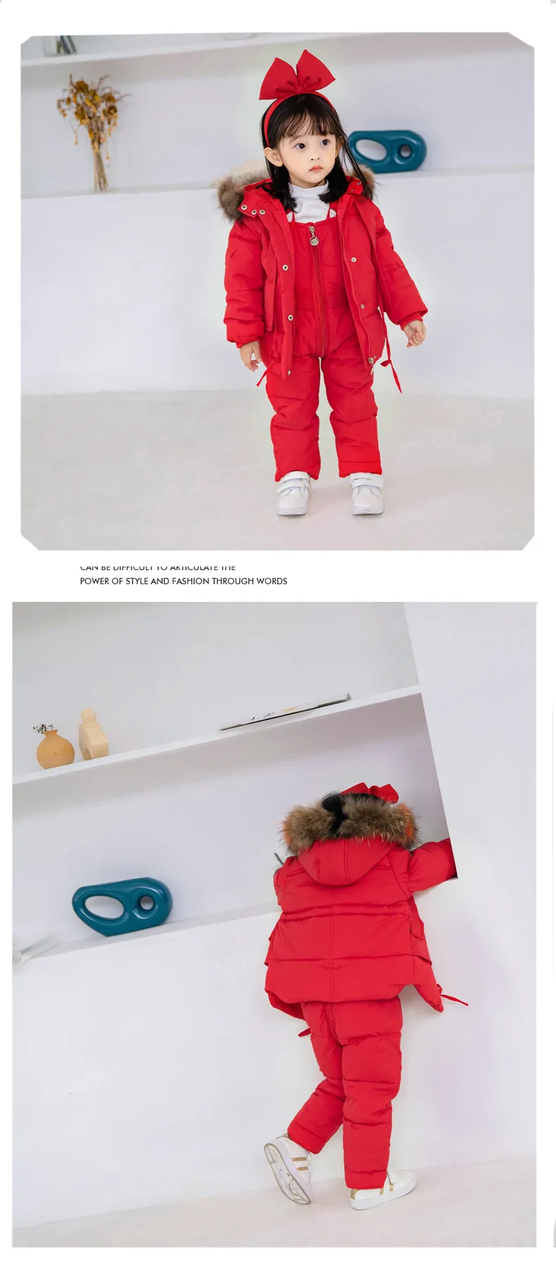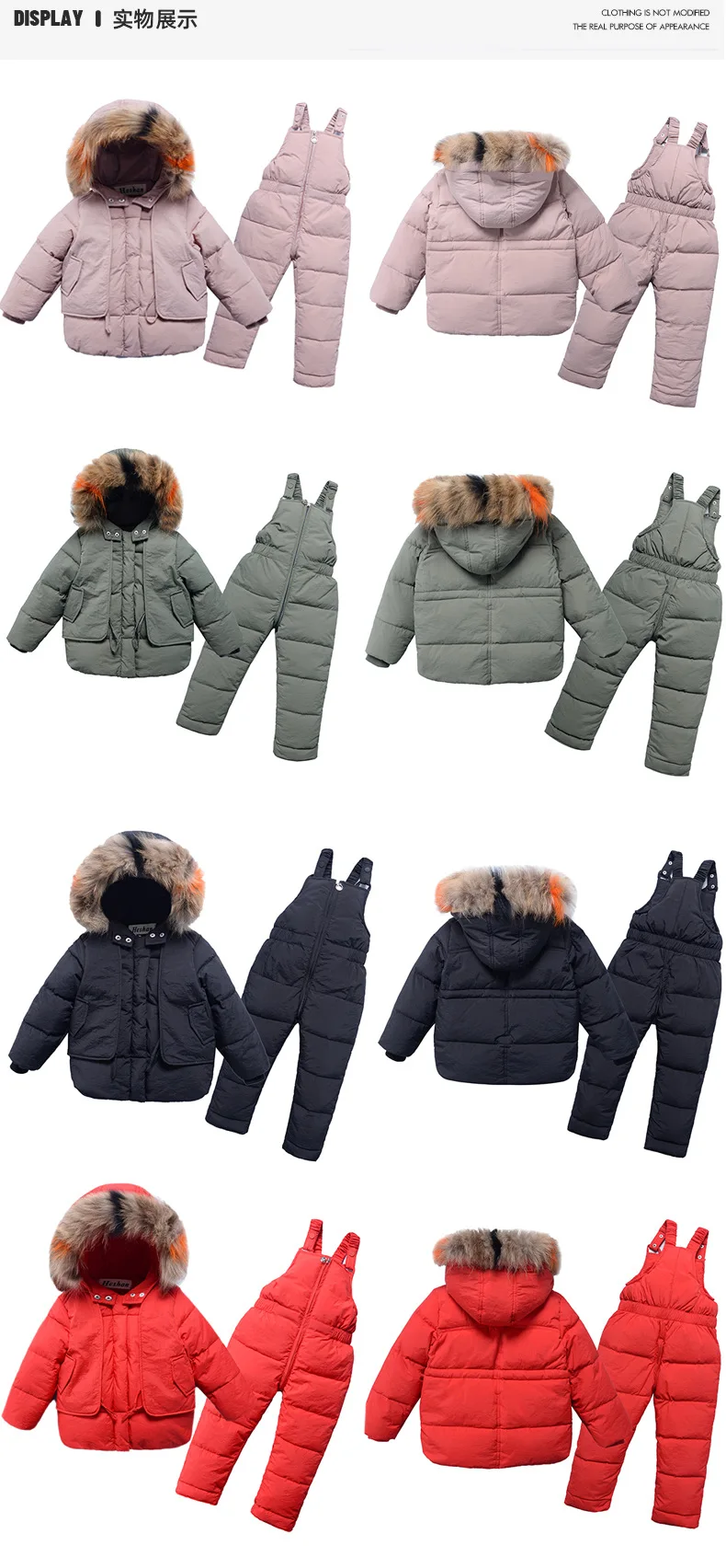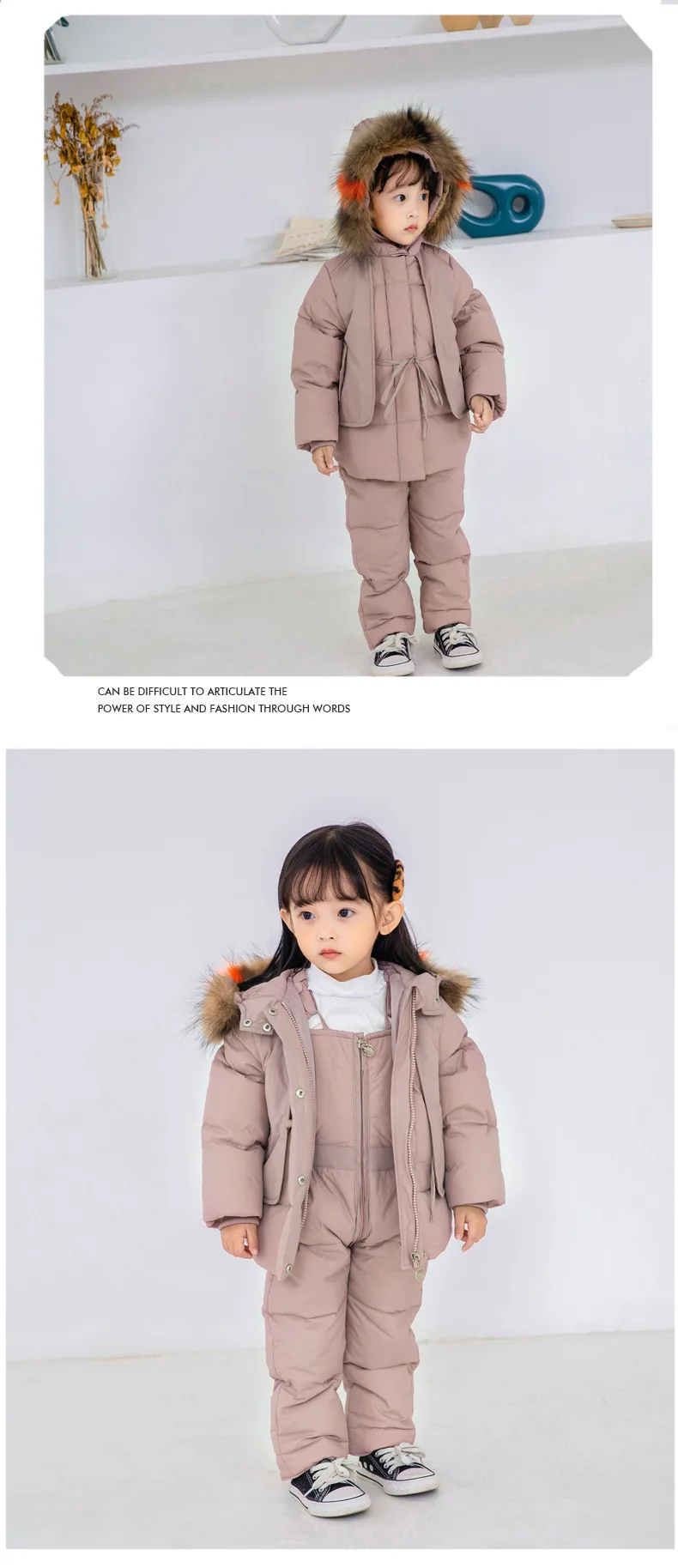 2023 nuovo inverno 2 3 4 6 8 anni giacca con cappuccio in pelliccia + tuta tuta 2 pezzi piumino d’anatra abbigliamento per bambini Set per neonati bambini ragazze ragazzi