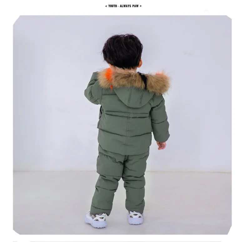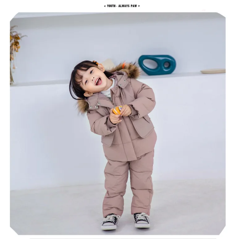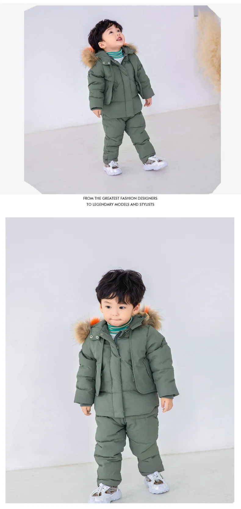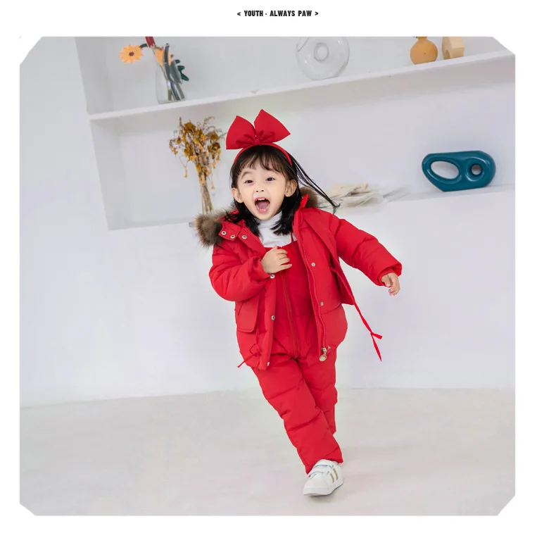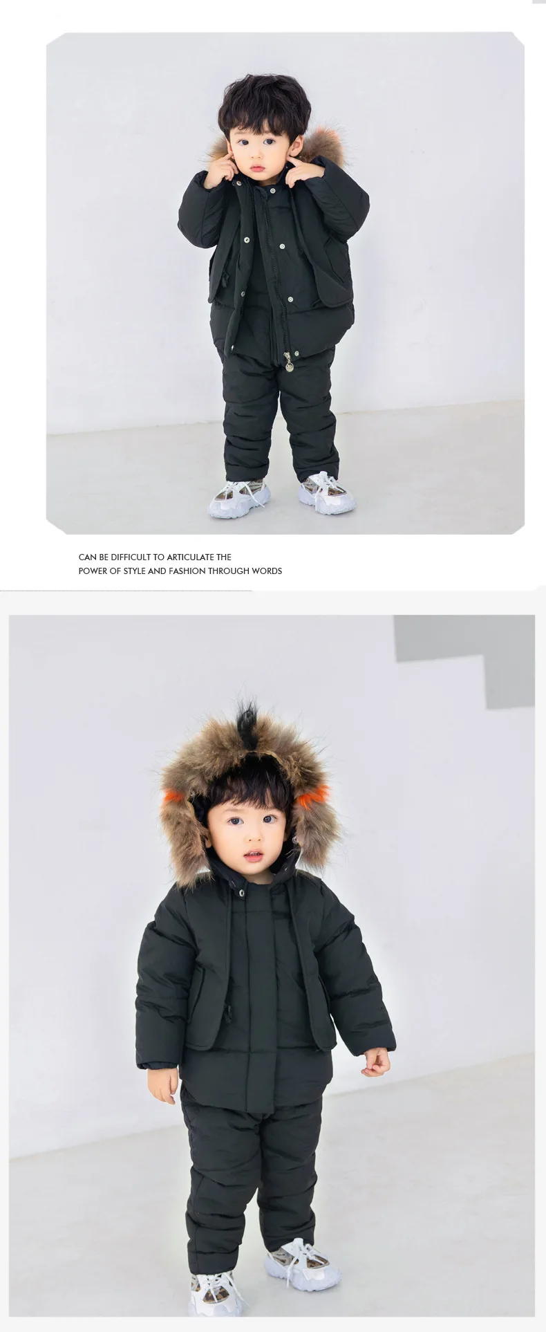 2023 nuovo inverno 2 3 4 6 8 anni giacca con cappuccio in pelliccia + tuta tuta 2 pezzi piumino d’anatra abbigliamento per bambini Set per neonati bambini ragazze ragazzi