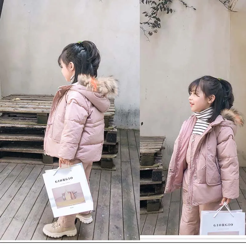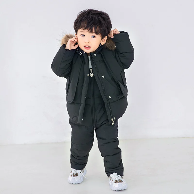 2023 nuovo inverno 2 3 4 6 8 anni giacca con cappuccio in pelliccia + tuta tuta 2 pezzi piumino d’anatra abbigliamento per bambini Set per neonati bambini ragazze ragazzi
