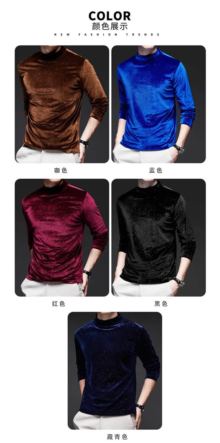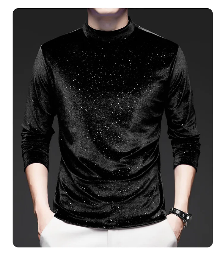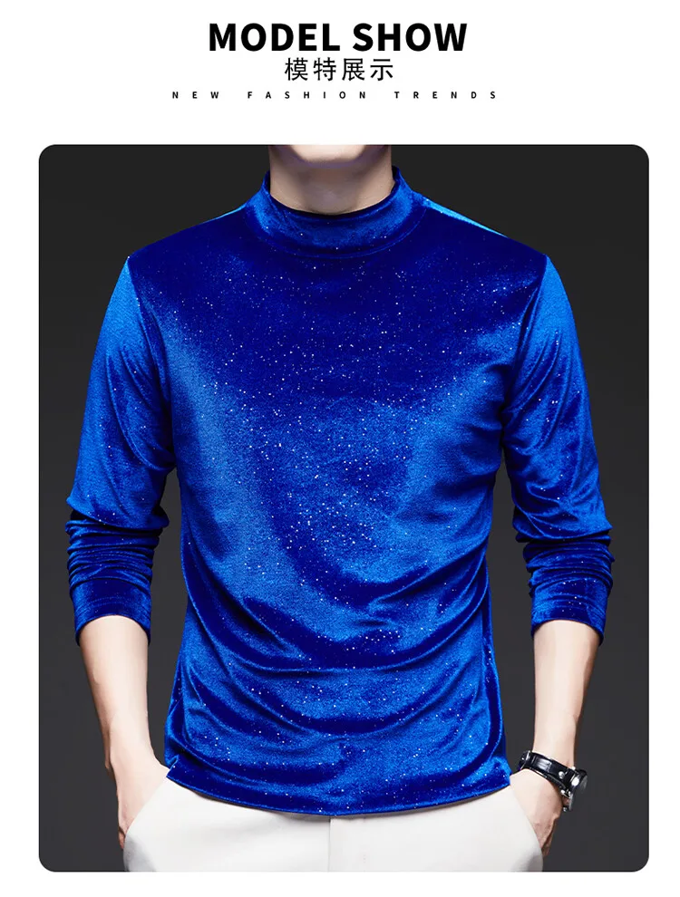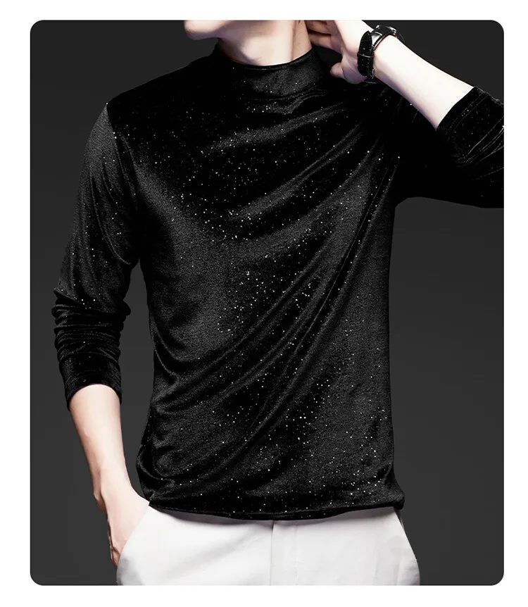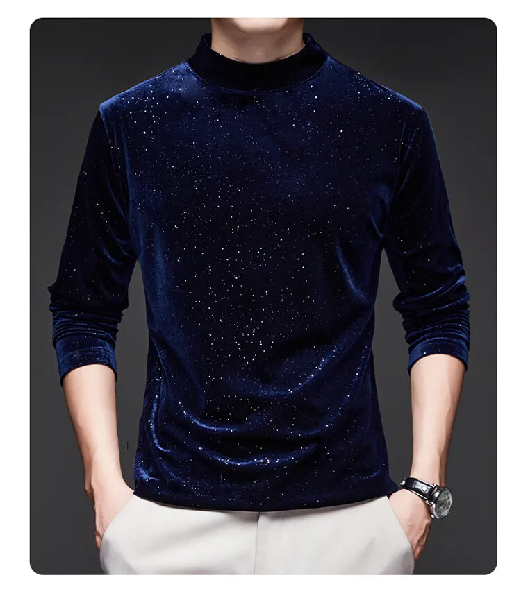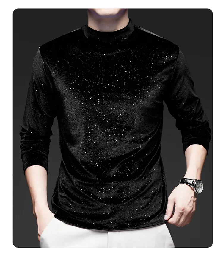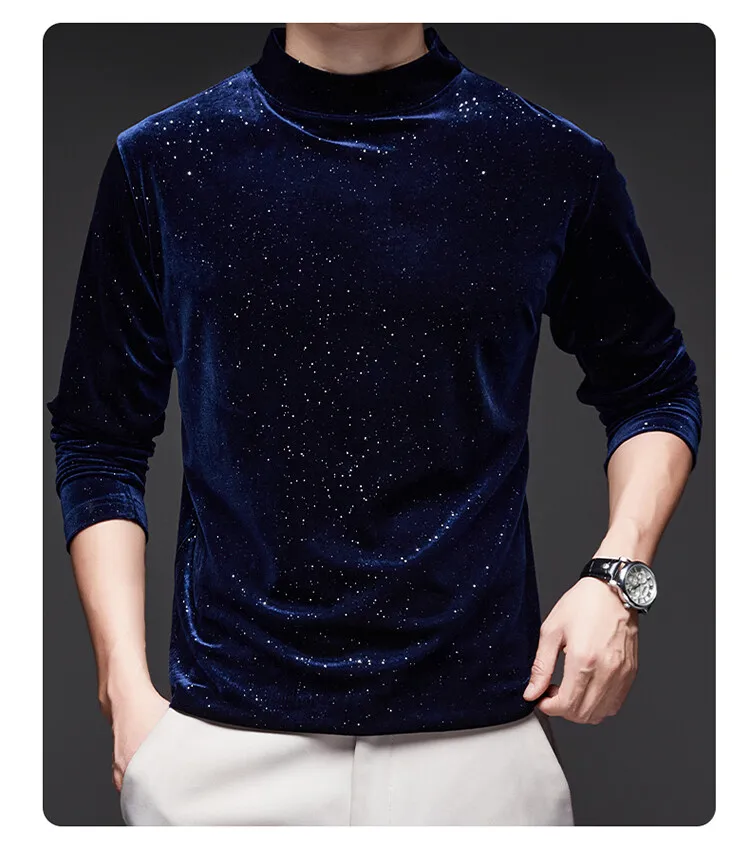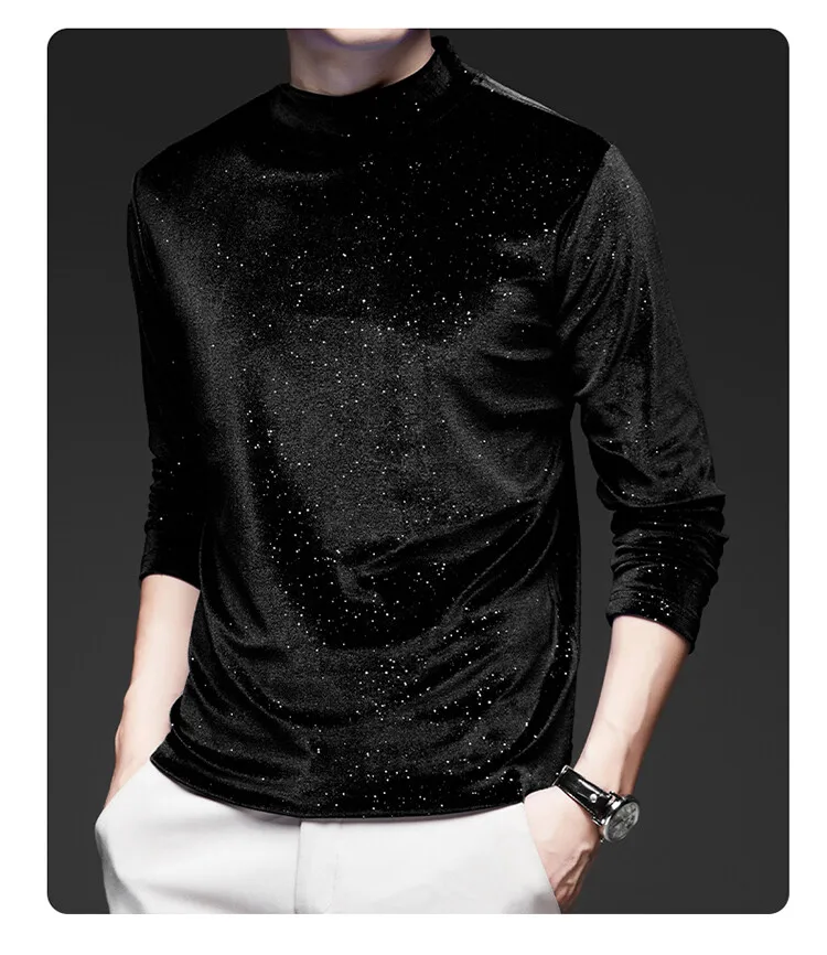 2024 a maniche lunghe da uomo autunno e inverno cielo stellato nuova T-shirt casual in velluto dorato con collo semi alto
