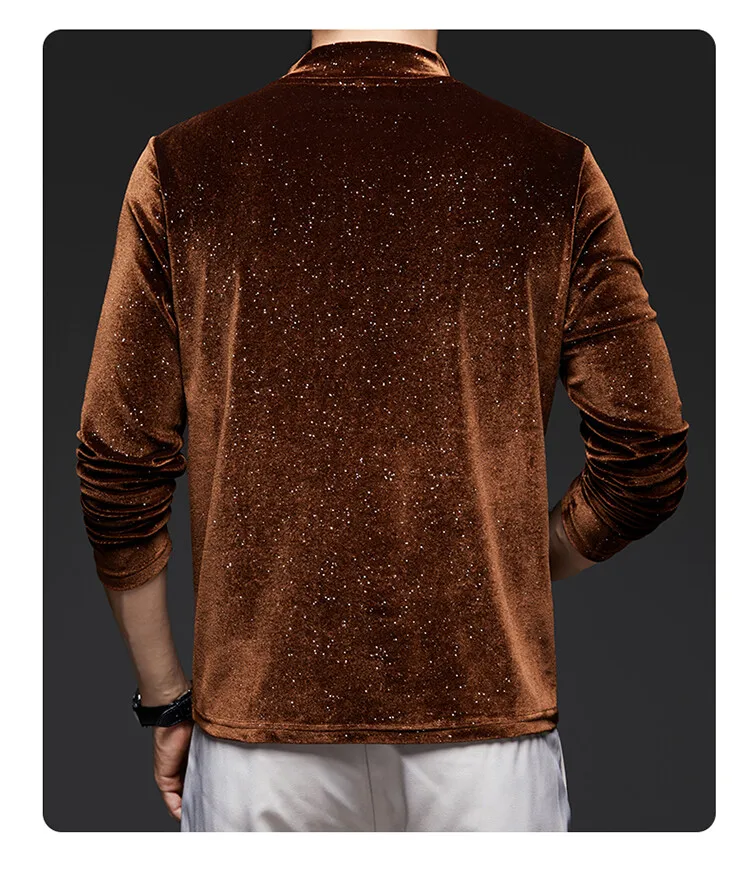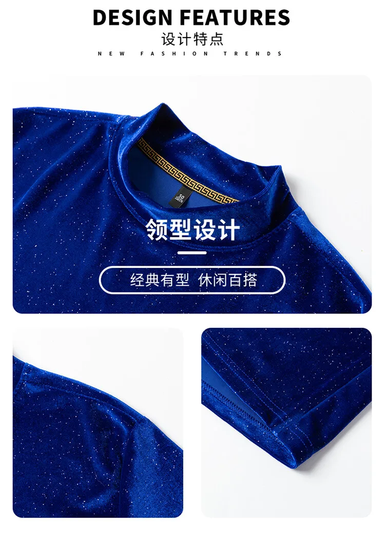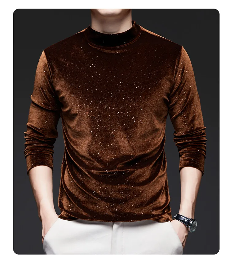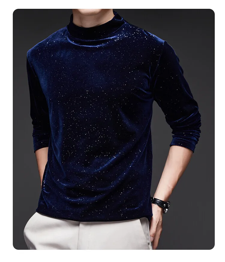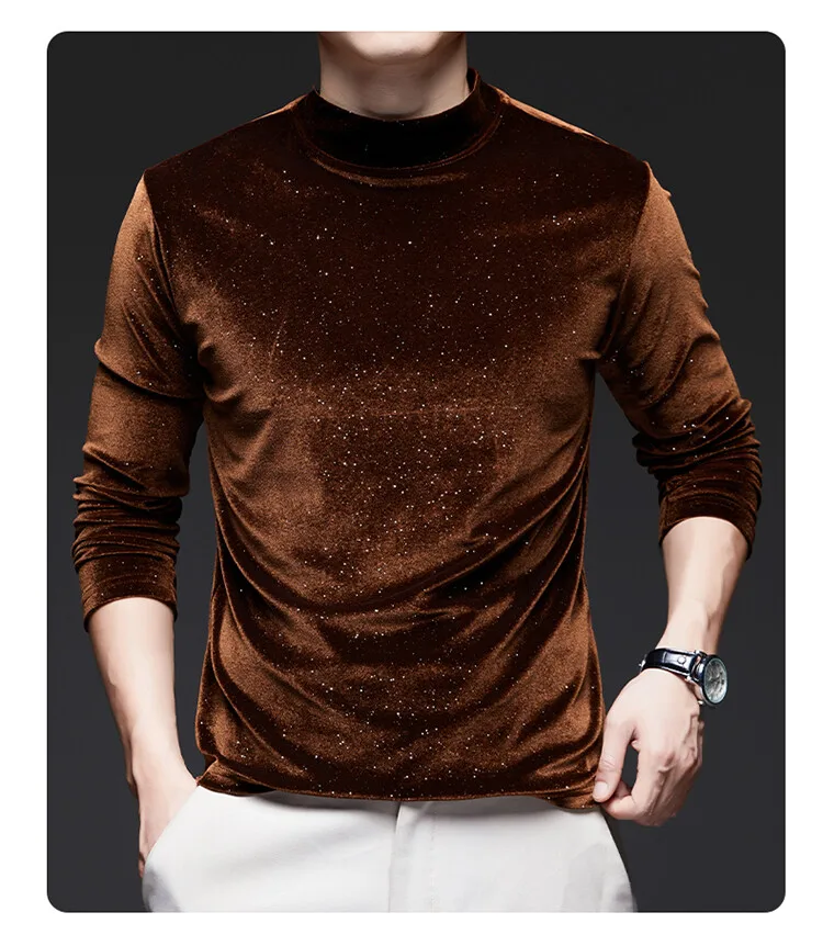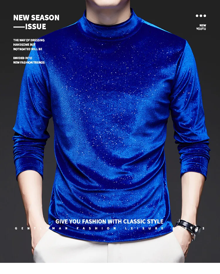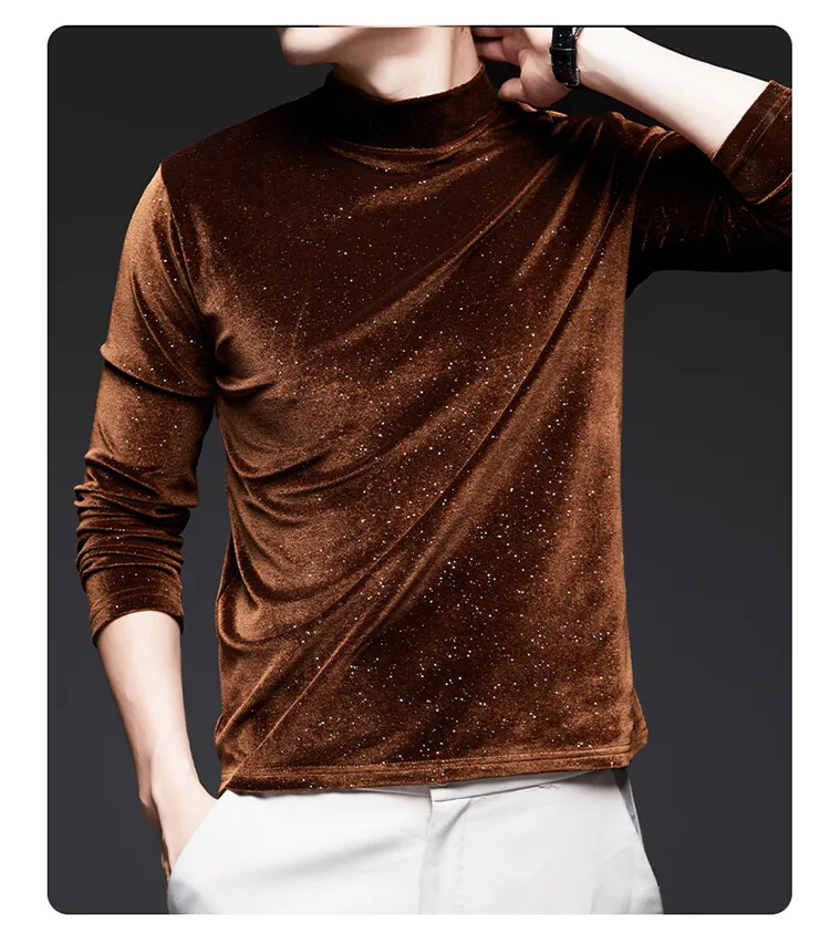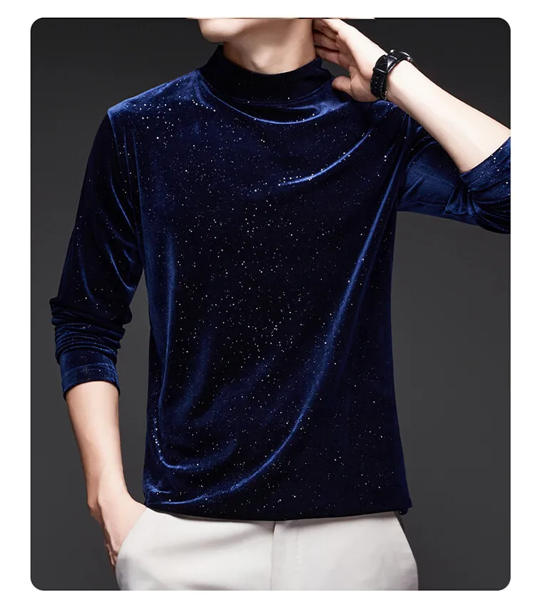 2024 a maniche lunghe da uomo autunno e inverno cielo stellato nuova T-shirt casual in velluto dorato con collo semi alto