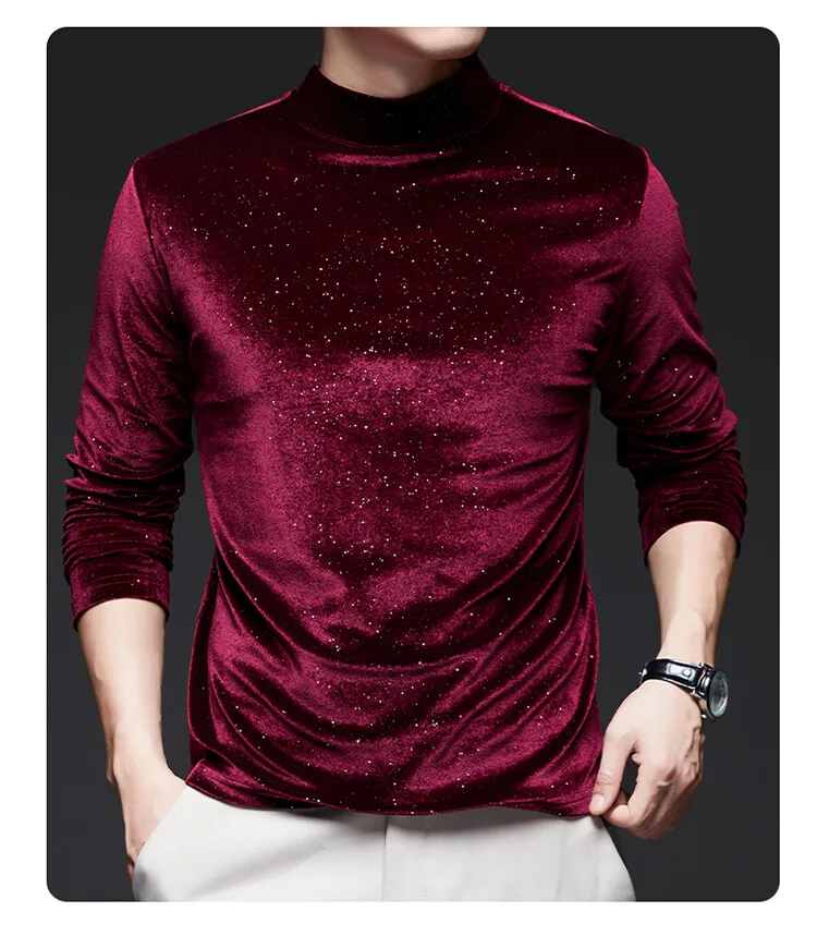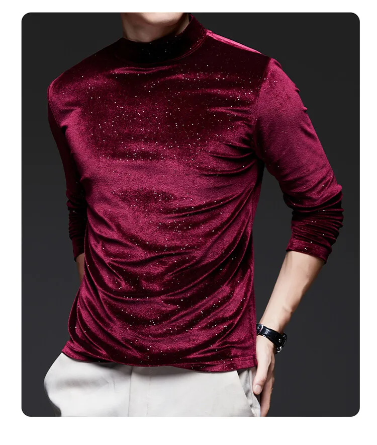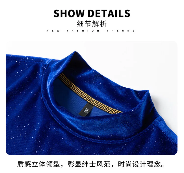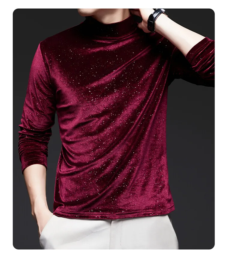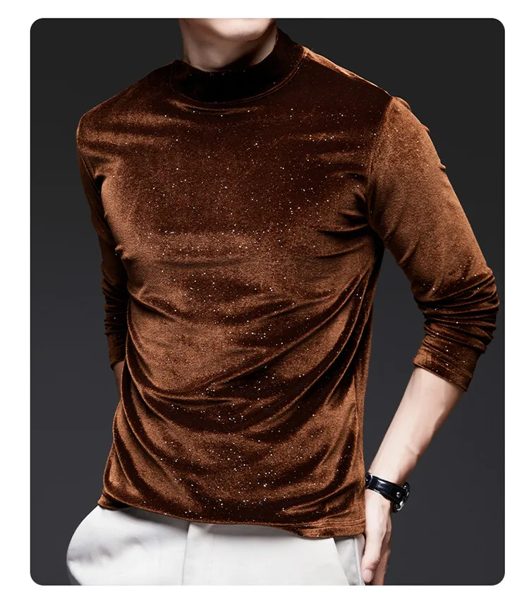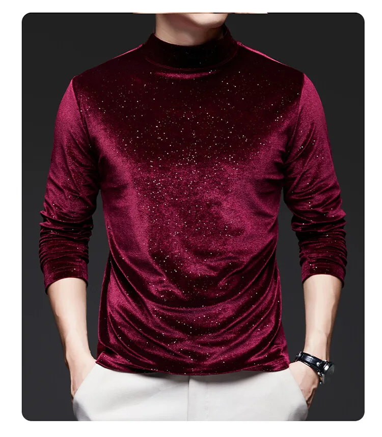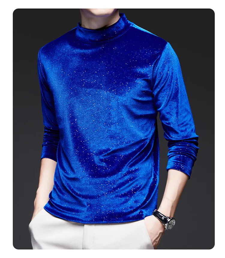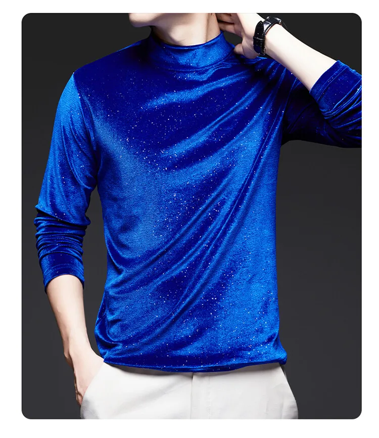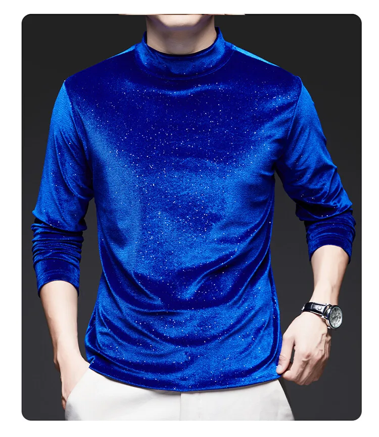 2024 a maniche lunghe da uomo autunno e inverno cielo stellato nuova T-shirt casual in velluto dorato con collo semi alto