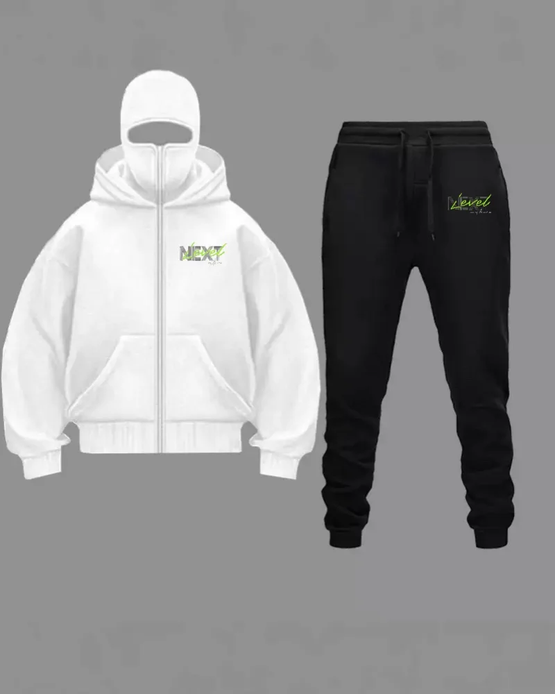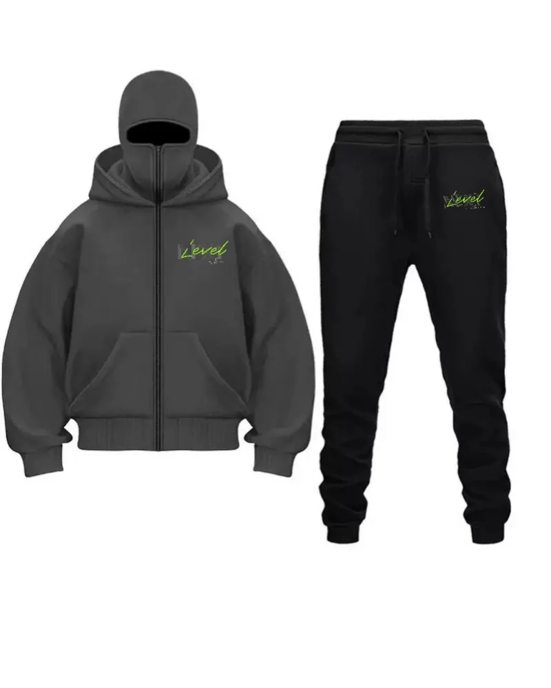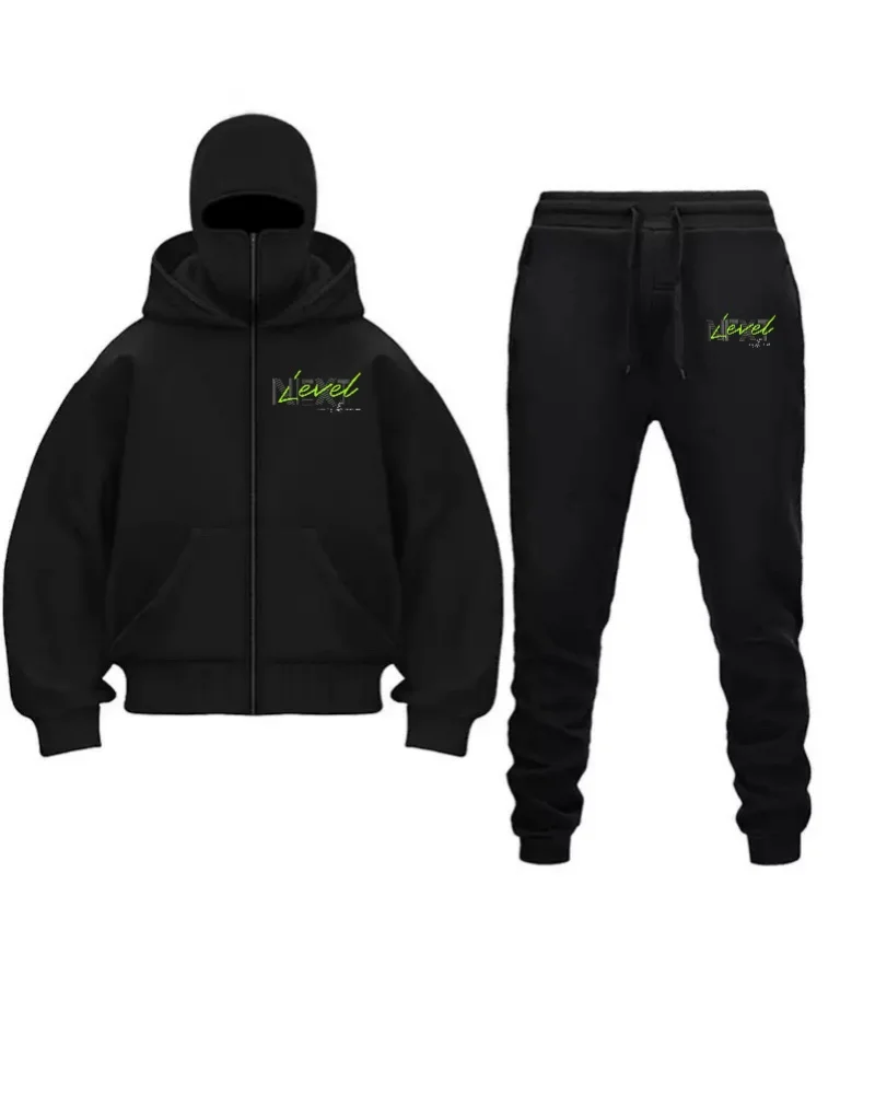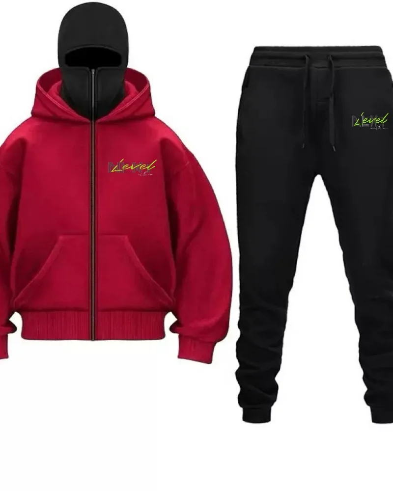 2024 abito casual da uomo in stile gotico di vendita caldo maglione con cerniera con cappuccio stampato con maschera per il viso + pantaloni sportivi con cinturino alla caviglia autunno a