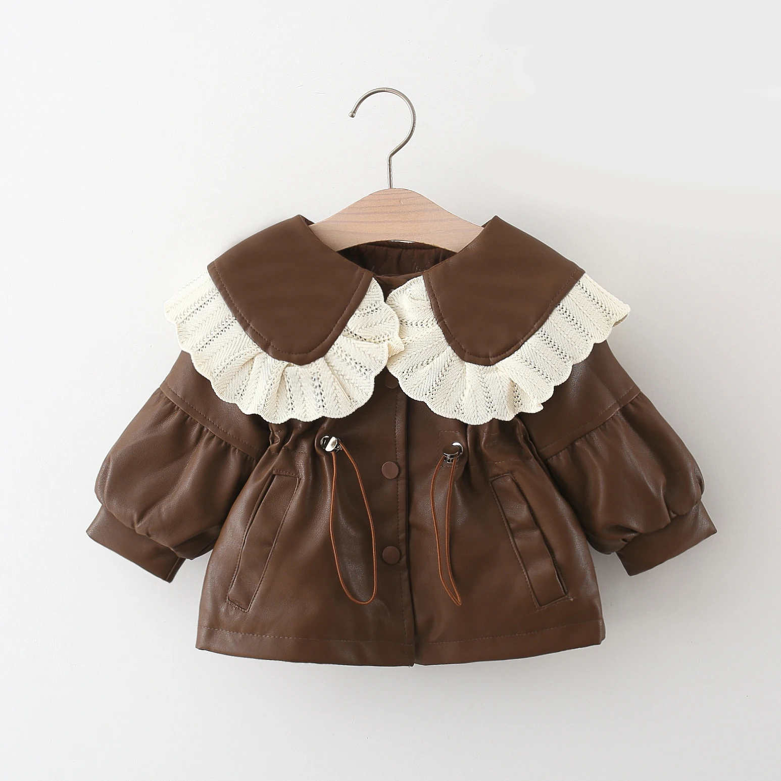 2024 autunno inverno capispalla neonata cappotti stile coreano moda PU collare per bambole carino neonato giacca calda vestiti per bambini BC853