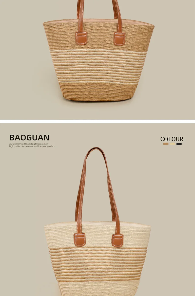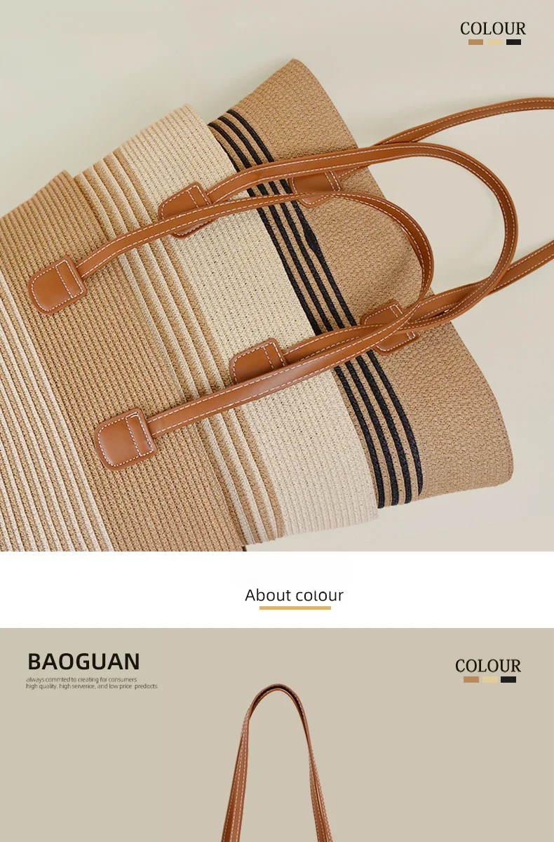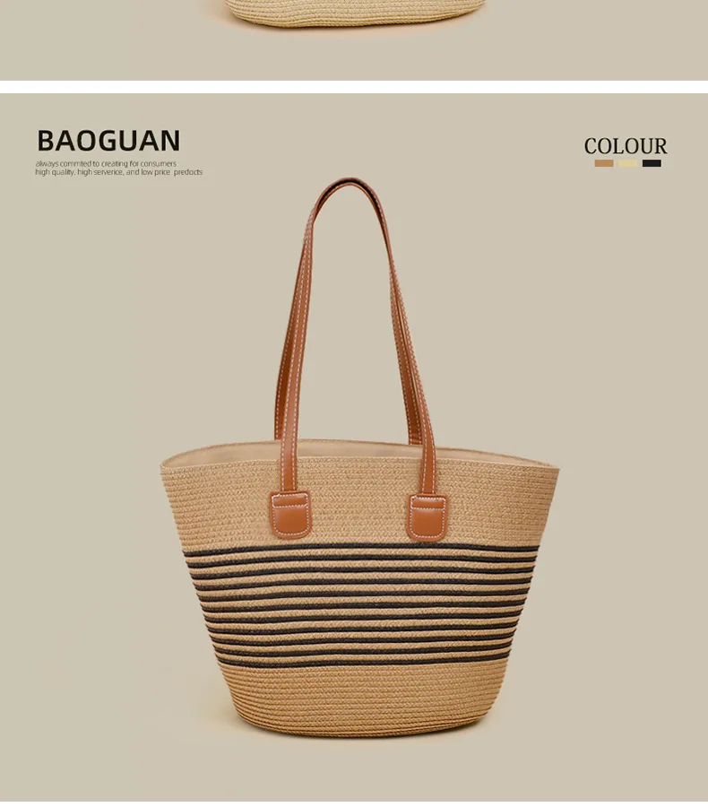 2024 Borse a tracolla sotto le ascelle intrecciate in paglia estiva Borsa da shopping femminile casual a righe da spiaggia bohémien
