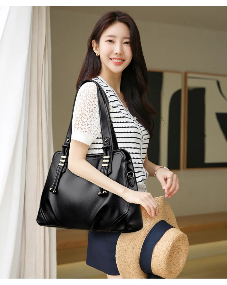 Borse casual da donna 2025 Nuove borse a tracolla di grande capacità Texture Borse tote in pelle PU brillante per borse eleganti a catena da donna