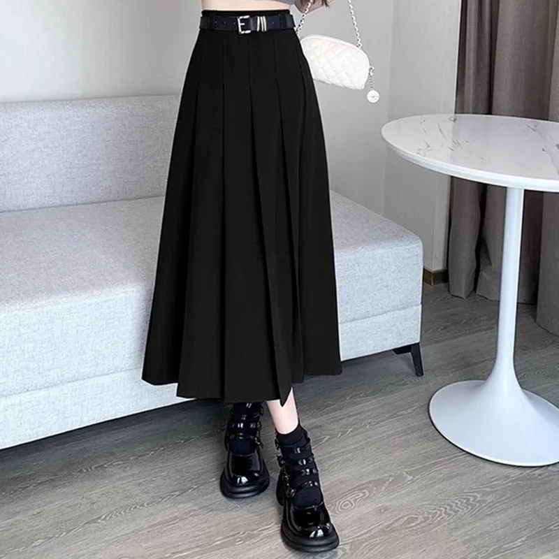 2024 donne vintage tinta unita JK gonne lunghe ragazze elegante e confortevole abito per il tempo libero femminile dolce una linea cerniera gonne a pieghe