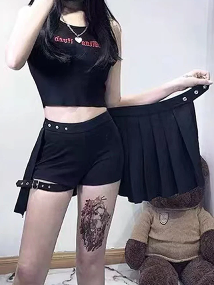 2024 Emo Alt Y2k Dark Goth Cyber Gonna Donna Streetwear Harajuku Grunge Punk Clubwear Anello per le gambe Patchwork Scava Fuori Gonna Pantaloncini