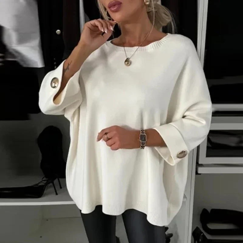 6 recensioni per 2024 inverno moda bottone maglione allentato autunno elegante O-collo lavorato a maglia pullover donna causale manica lunga tinta unita maglione top