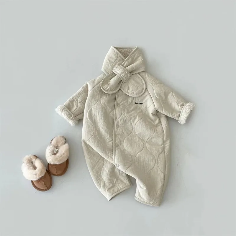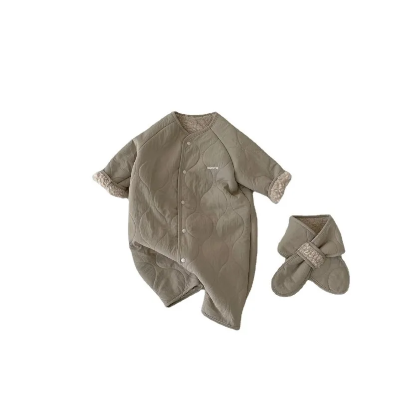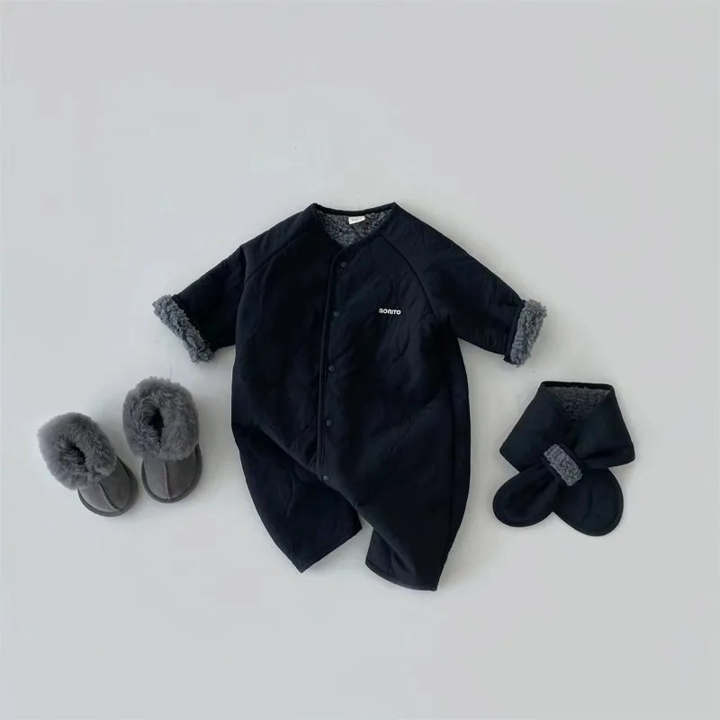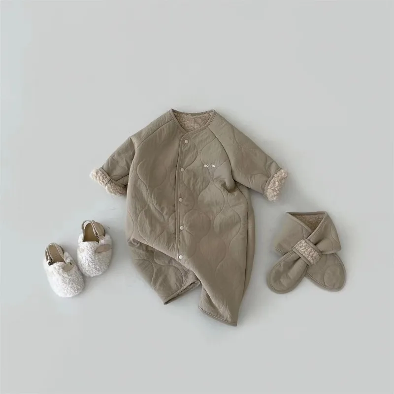 2024 inverno nuovo bambino manica lunga ricamo pagliaccetto neonato in pile spesso tuta neonato ragazzo ragazza solido vestiti caldi 0-3Y