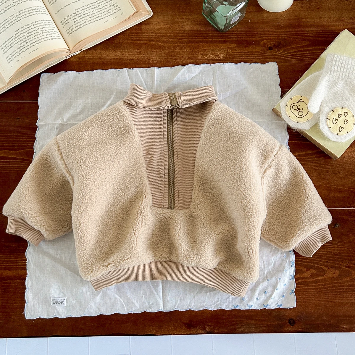 2024 Inverno Nuovo Vestito Del Bambino In Pile Delle Ragazze Dei Ragazzi Vestiti Del Bambino Magliette E Camicette Maniche Lunghe Zip Up Sport Top 1-3Y Cappotto Del Bambino di Colore Solido