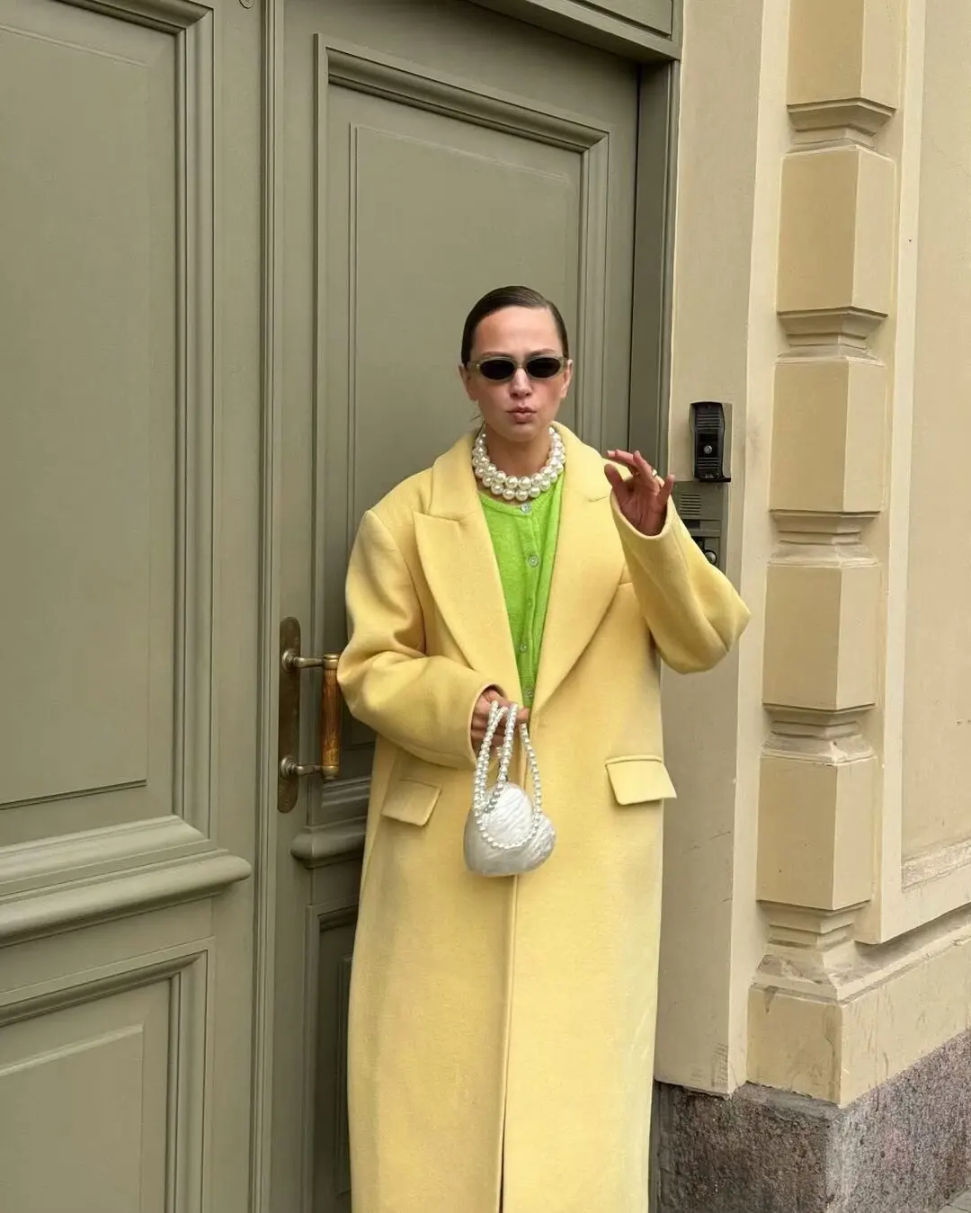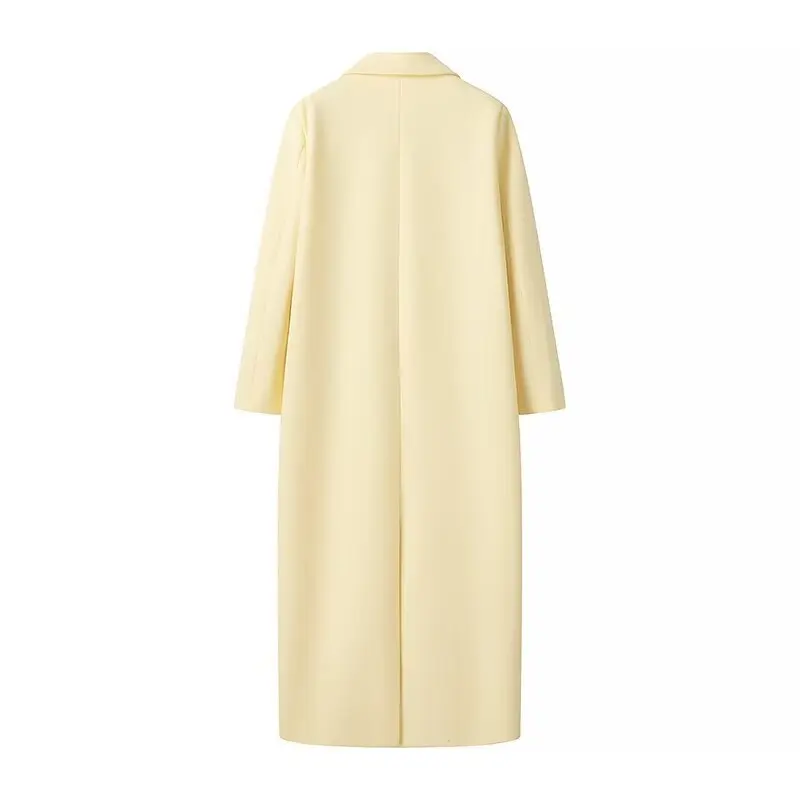 2024 Moda autunnale Versatile giallo oca Nuovo cappotto esteso in lana Abbigliamento da donna Amazon