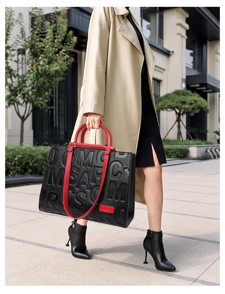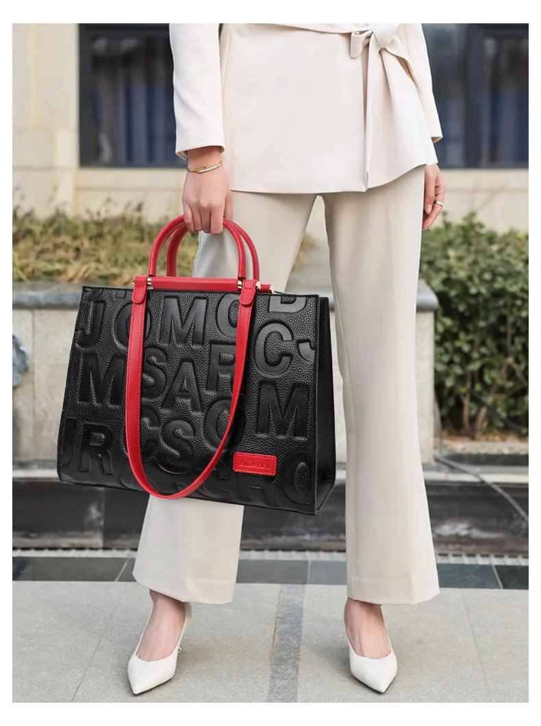 2024 Nuova borsa da donna stampata con lettera a contrasto di grande capacità Borsa da mamma in pelle bovina di fascia alta