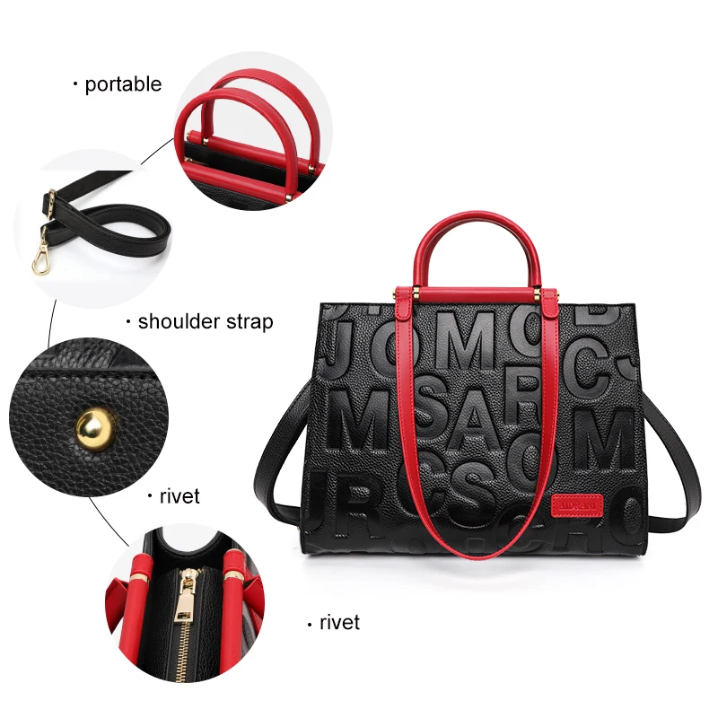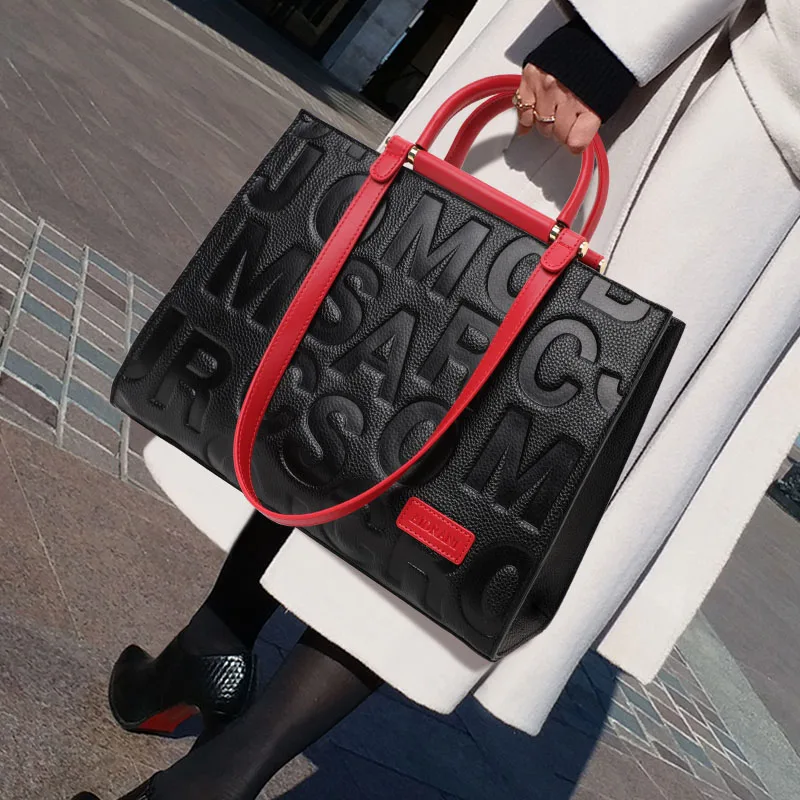 2024 Nuova borsa da donna stampata con lettera a contrasto di grande capacità Borsa da mamma in pelle bovina di fascia alta