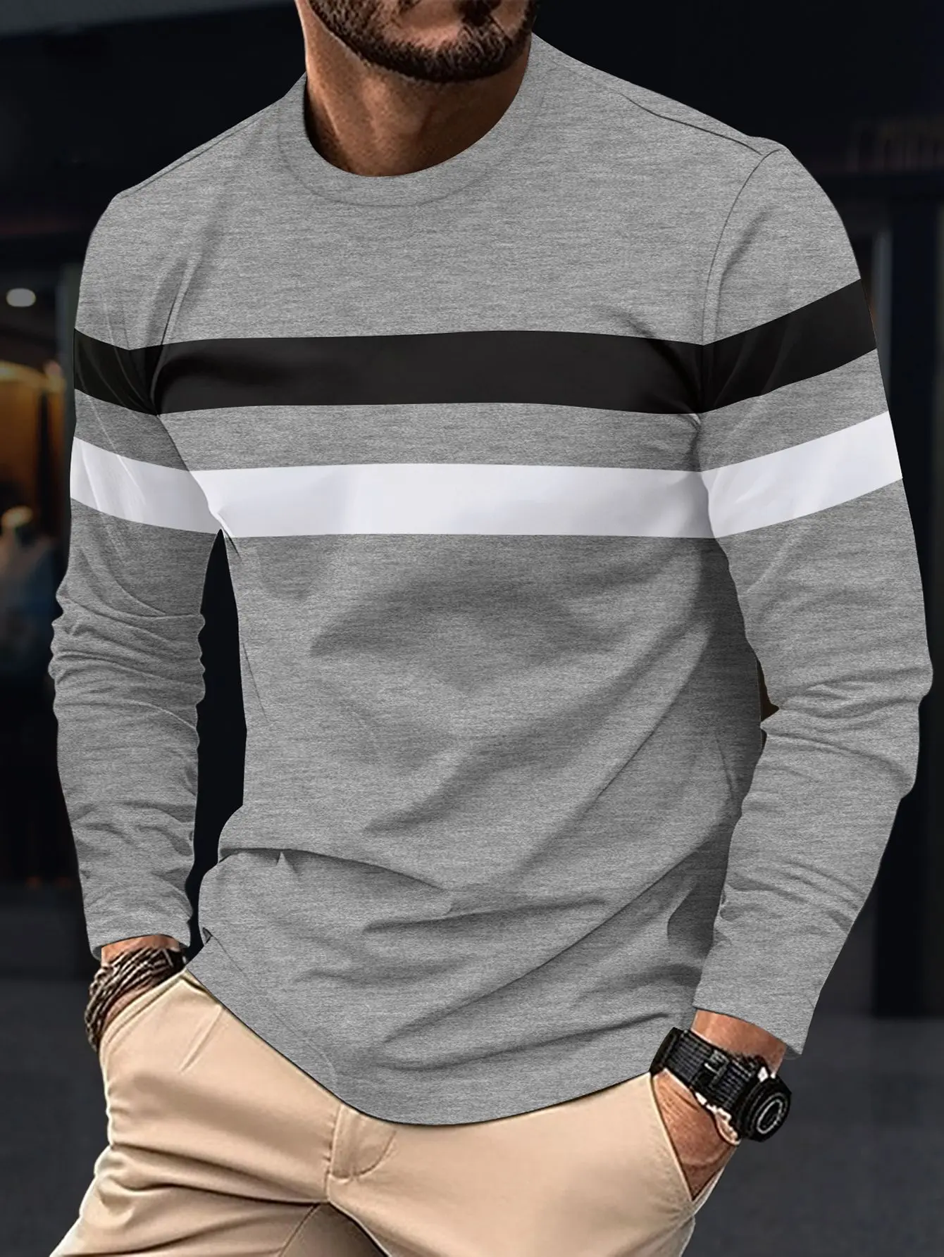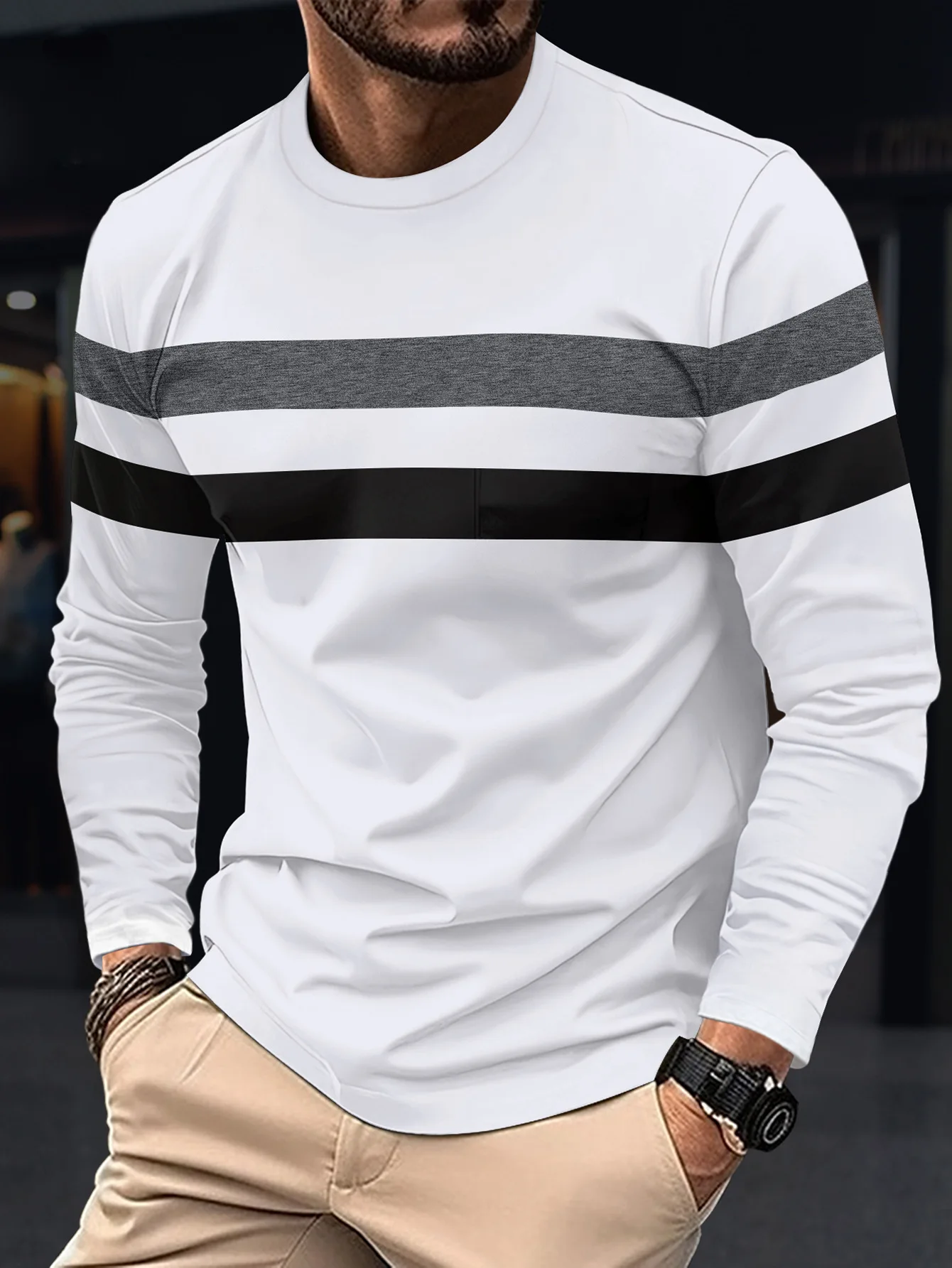 2024 Primavera e Autunno Moda Uomo Manica Lunga Girocollo Splicing T-shirt Business Anti Rughe Street Wear Casual Top 12024 Primavera e Autunno Moda Uomo Manica Lunga Girocollo Splicing T-shirt Business Anti Rughe Street Wear Casual Top