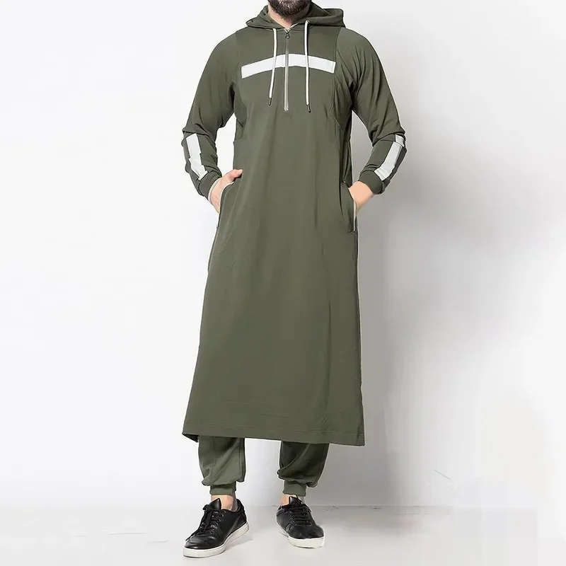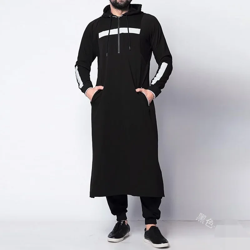 2024 pullover casual a maniche lunghe da uomo nuovo con cappuccio maglione lungo con coulisse abito tascabile a righe moda vintage