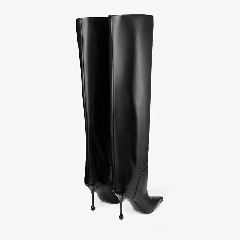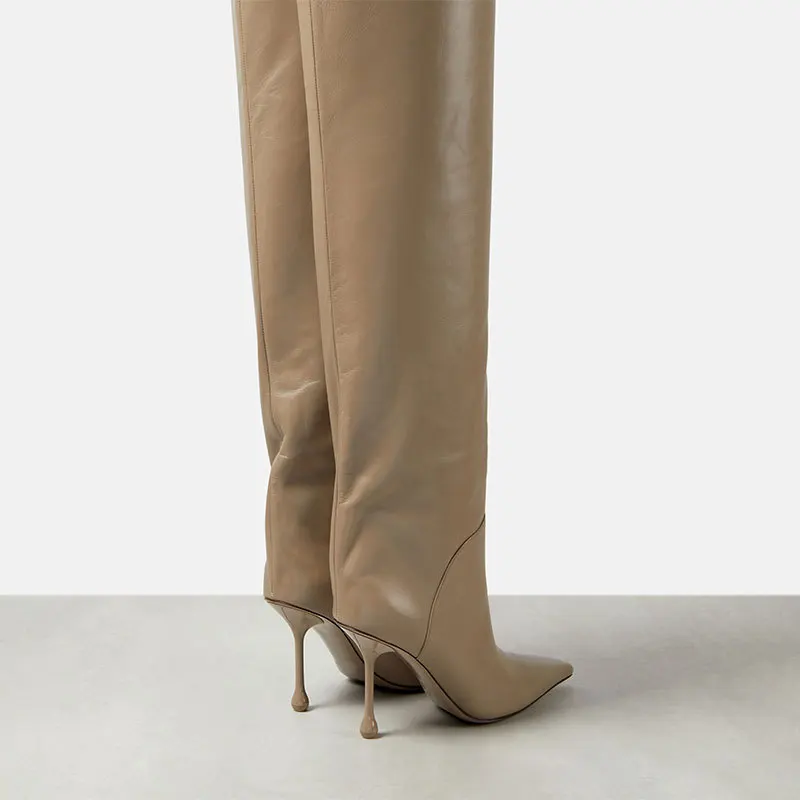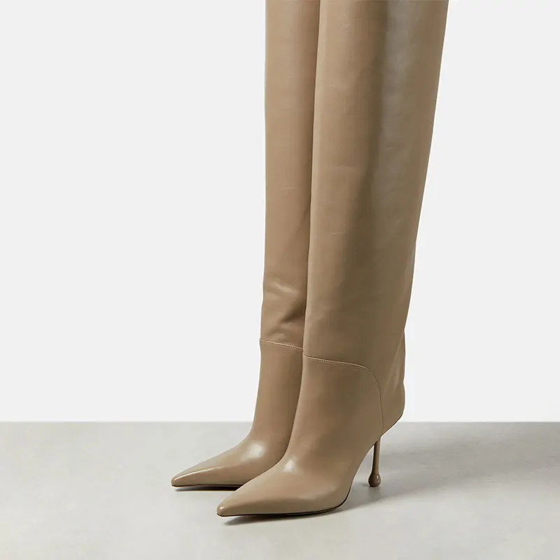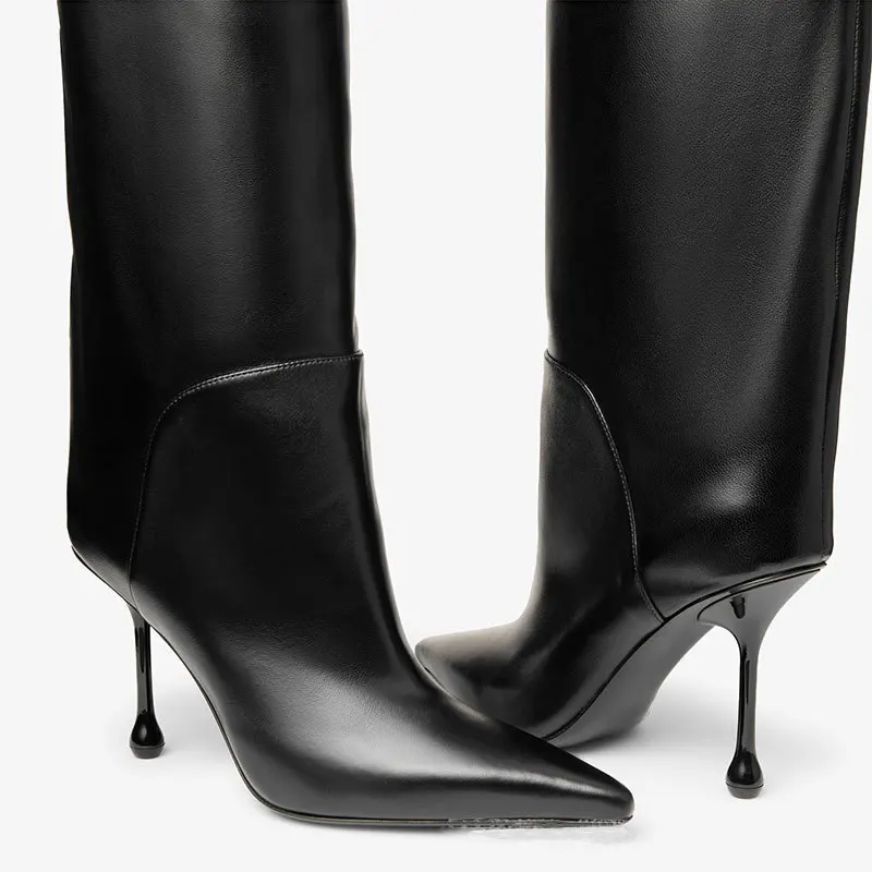 2024 sfilata di moda europea e americana Sexy stivali dritti con tacco alto a punta, indossando stivali lunghi da donna di grandi dimensioni