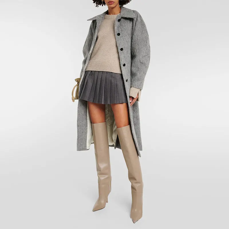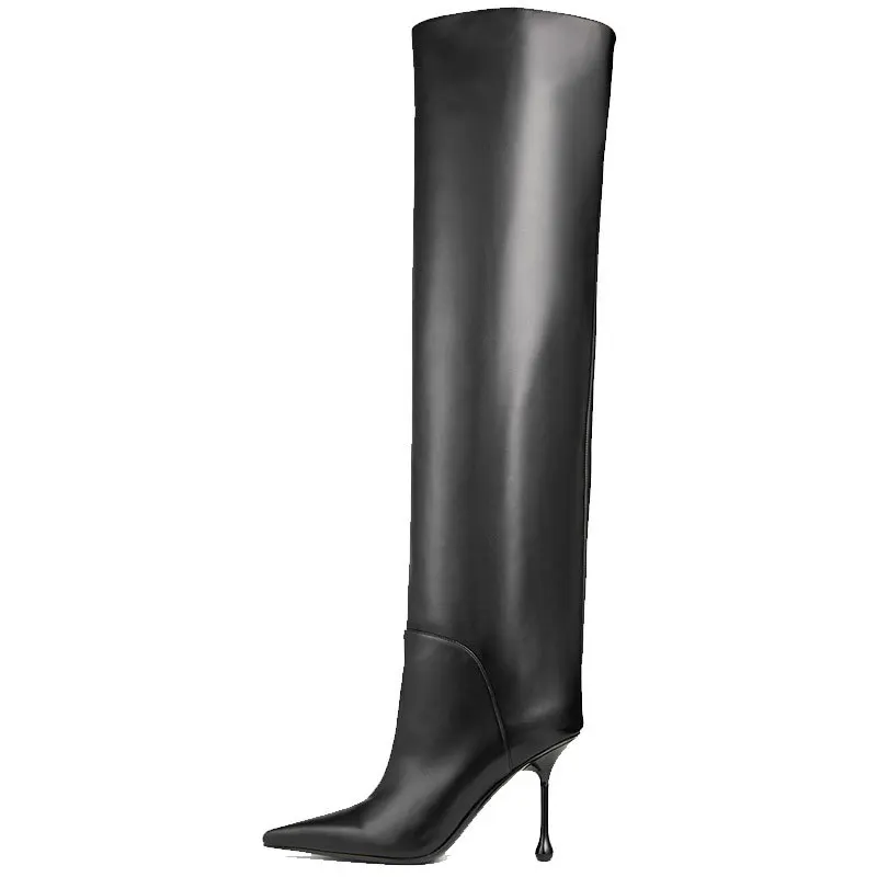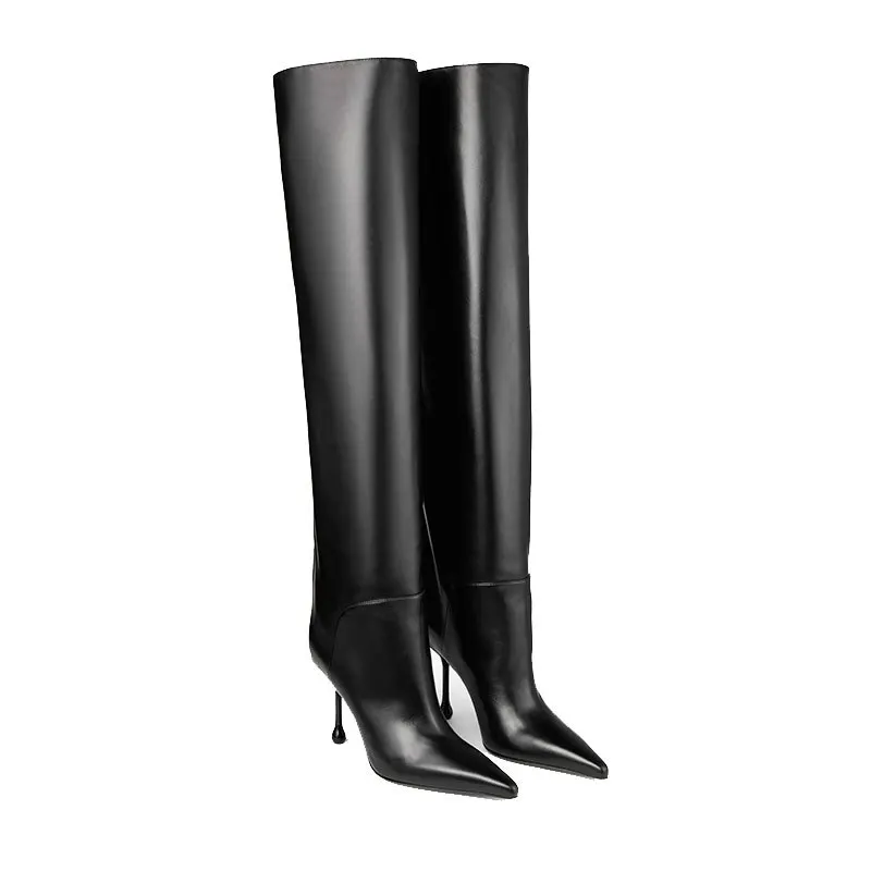 2024 sfilata di moda europea e americana Sexy stivali dritti con tacco alto a punta, indossando stivali lunghi da donna di grandi dimensioni